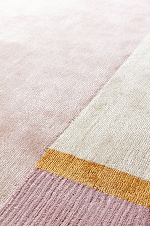 The Ligne Pure Unite 254.001.000 is a sophisticated rug that combines modern geometric design with a soft pastel colour palette. Shades of beige, blush pink, warm rust and subtle golden accents create a refined composition that feels both artistic and inviting. This design blends luxury with creativity, adding an elegant statement to any interior.