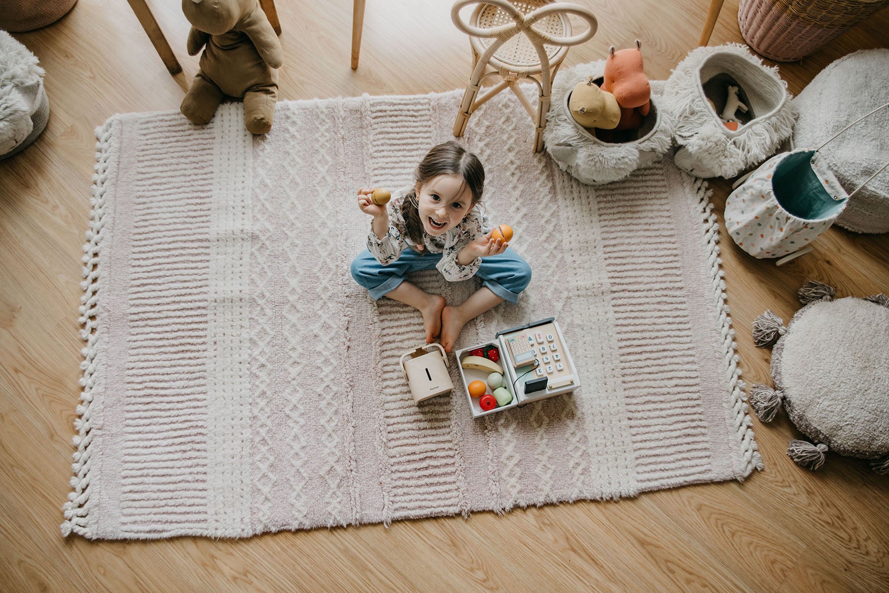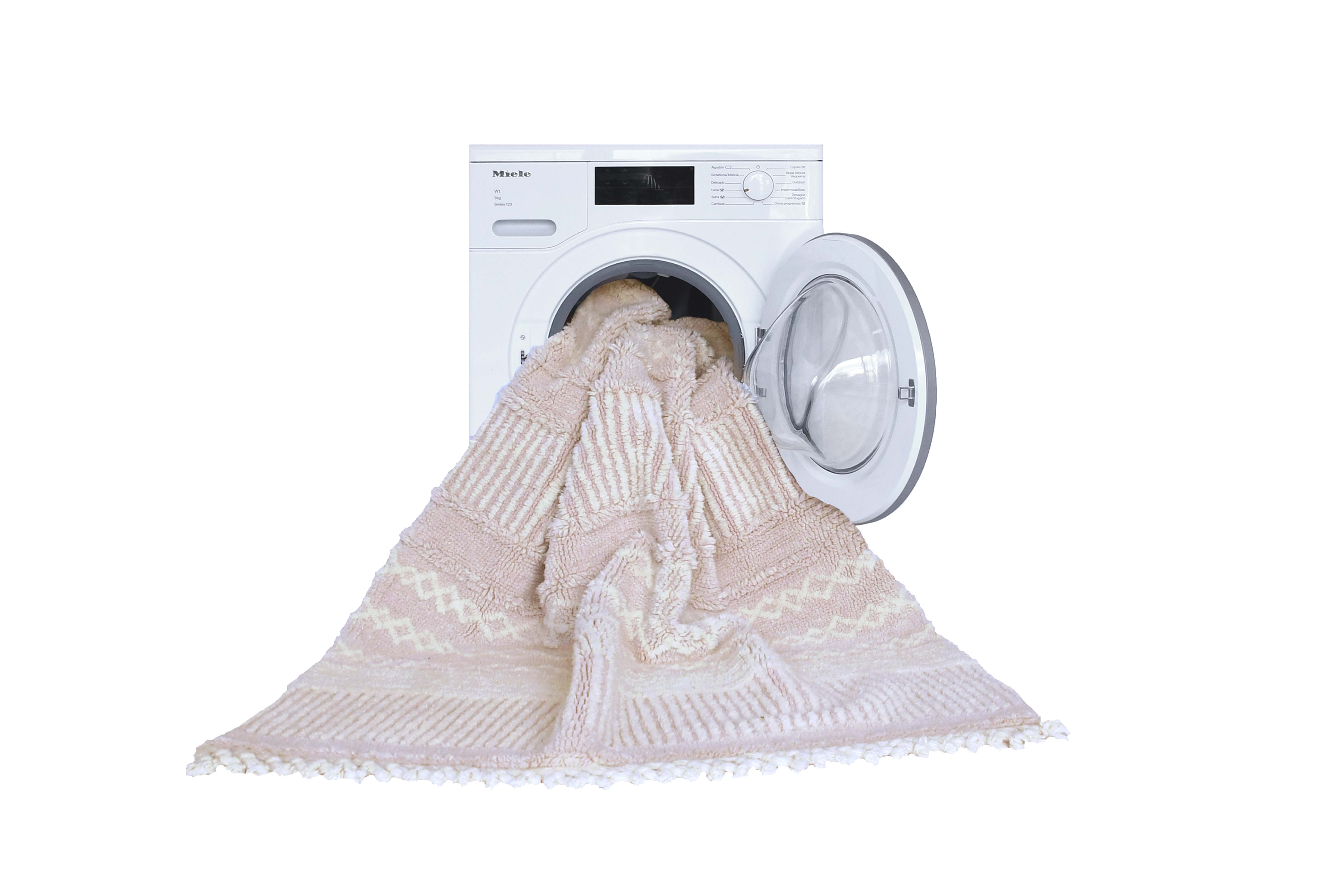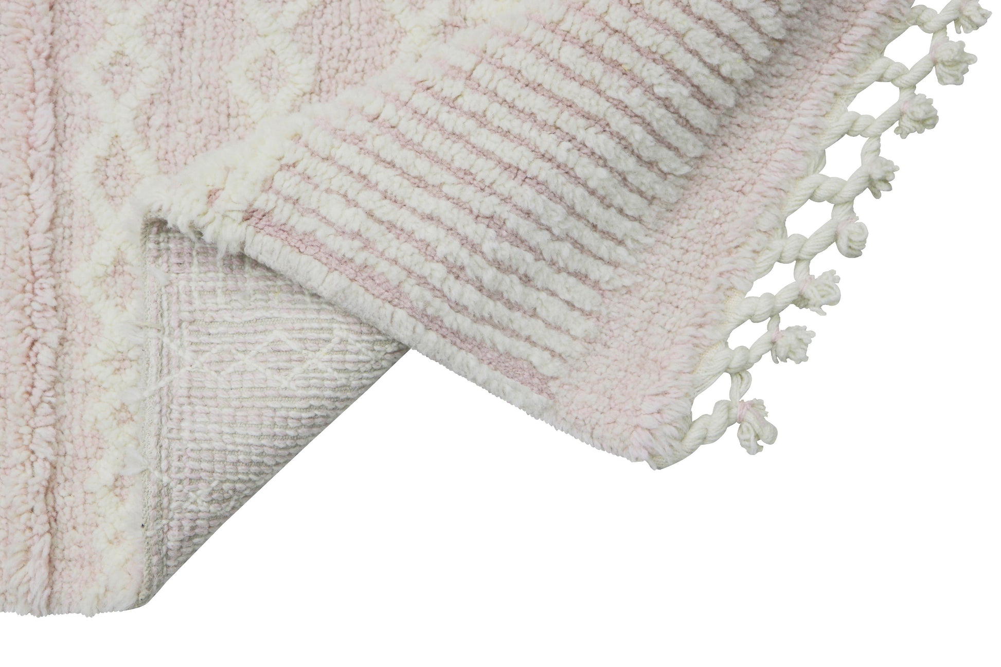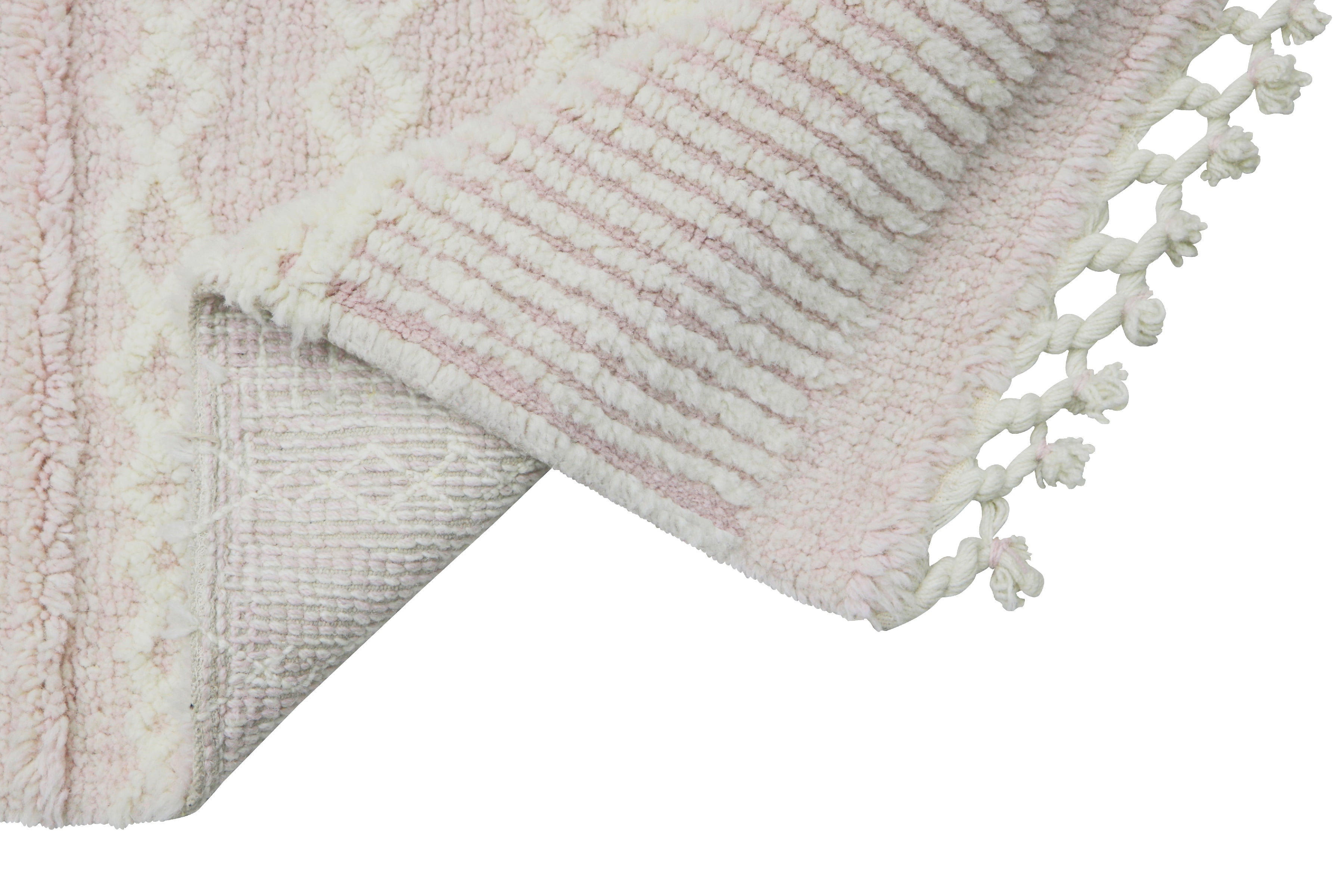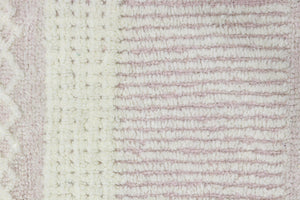 The Lorena Canals Ari Rose washable wool rug brings soft elegance to any room with its delicate ivory and blush pink stripes, finished with charming fringed edges. Made from 100% natural wool, this lightweight, handwoven rug combines plush comfort with the unique benefit of being fully machine washable, perfect for busy households that don’t want to compromise on style.