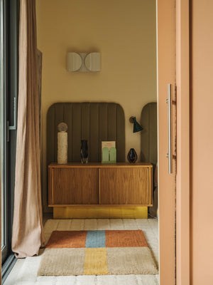 Inspired by Lorena Canals’ journey of creative renewal, this rug showcases a harmonious blend of warm earth tones and fresh colors, crafted from 100% RWS-certified wool and backed with recycled cotton. Its natural fibers provide softness underfoot and durability for everyday living, perfect for modern homes embracing eco-friendly décor.