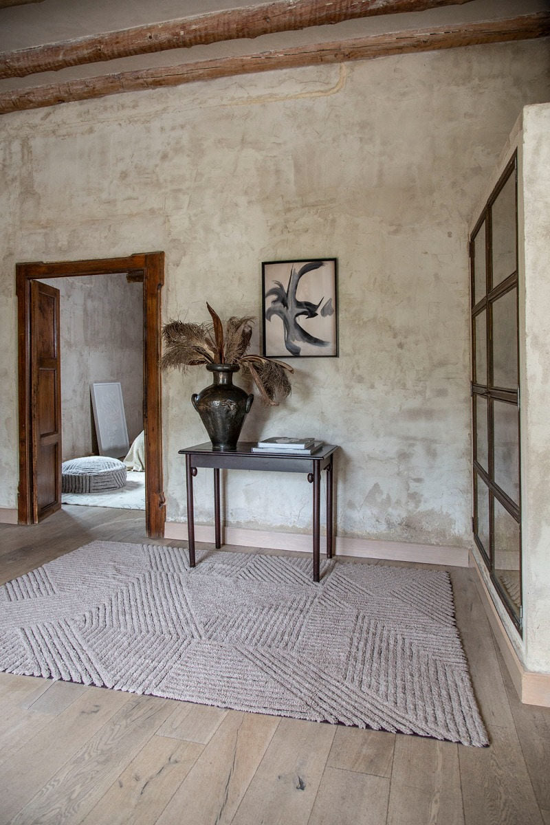 Make a striking statement with the Lorena Canals Geometrics Black Chia, a sophisticated wool rug that combines natural softness with a modern geometric pattern. Crafted from 100% natural wool with a recycled cotton backing, this rug brings depth and texture to your living room, bedroom, or office space.