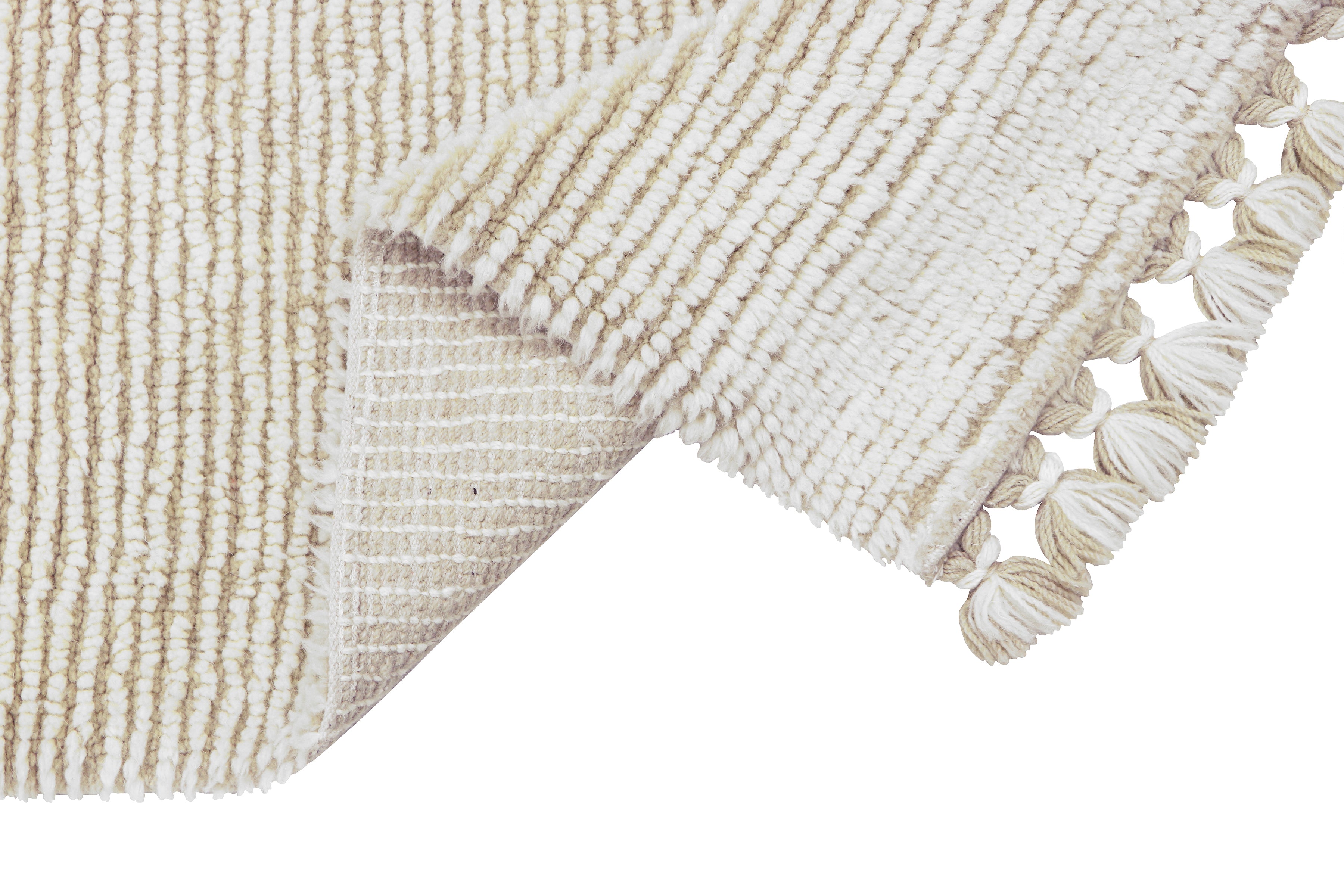Bring natural warmth and subtle elegance to your interior with the Lorena Canals Koa Sandstone. This luxurious wool rug features soft stripes in warm sandstone and ivory tones, woven into a plush, resilient wool texture that adds comfort and style to bedrooms, living rooms, or peaceful reading corners.
