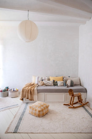 The Lorena Canals Little Chef’s Gastro Vintage Blue adds a calming and timeless touch to your child’s room or nursery. Made from 100% organic cotton, this rug features soothing vintage blue hues paired with a subtle pattern, creating a cozy and breathable surface perfect for little feet.