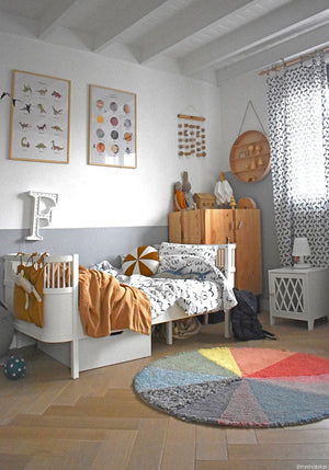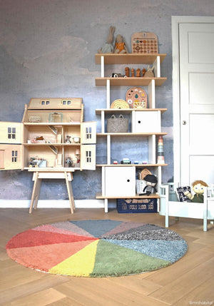 Transform your child's room with the vibrant Lorena Canals Pie Chart rug. Made from soft wool, this shaggy, washable rug not only adds a splash of color but also provides a cozy space for playtime.
