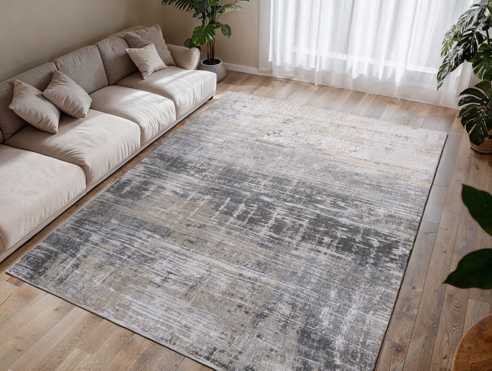 Made from durable PET material, it not only provides a soft underfoot but also ensures a long lifespan, resistant to the demands of daily life. The abstract pattern in soothing gray tones adds a touch of sophistication and fits various decor styles.