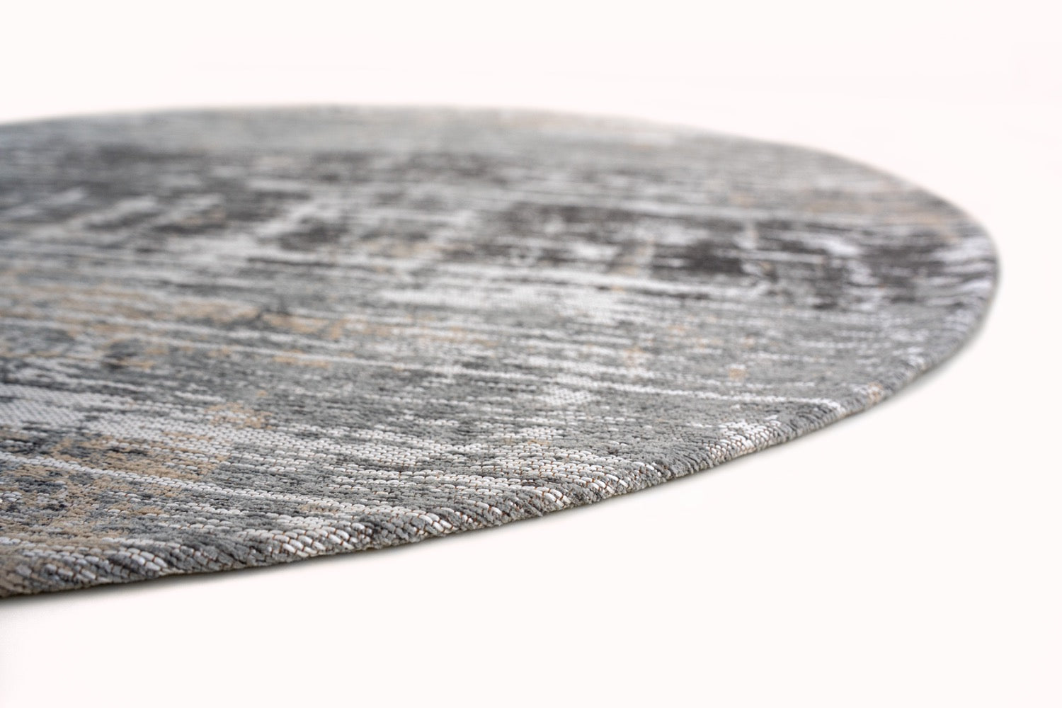 Introducing the Louis de Poortere Atlantic Streaks Round Coney Grey 8716 rug, a modern and stylish addition to any room. Made in Belgium, this jacquard flatweave rug features a unique abstract design in shades of grey. Crafted from PET material, it is not only durable but also anti-allergic and anti-static. Available in two sizes, Ø 140 cm and Ø 240 cm, this rug is perfect for the living room, dining room, or kitchen. Elevate your space with this versatile and high-quality rug from Louis de Poortere.