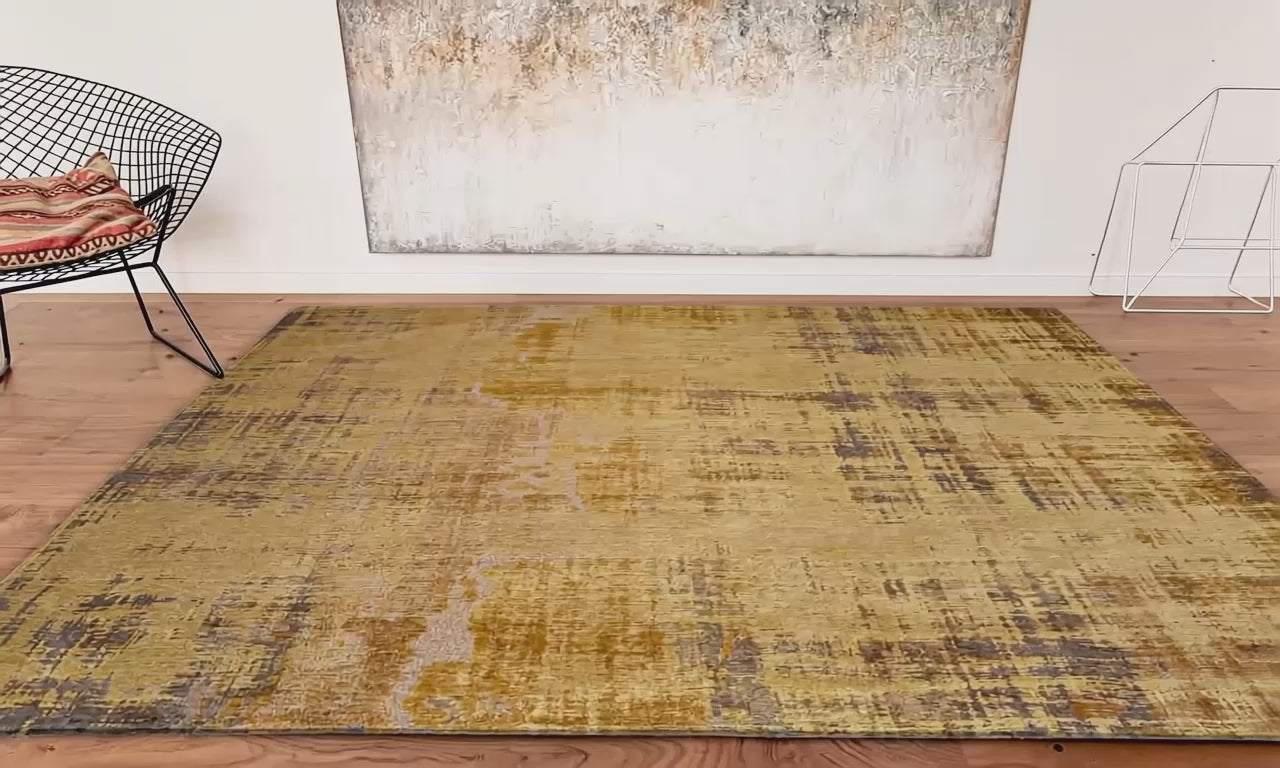 Introducing the Louis de Poortere Atlantic Venetian Dust Rialto Gold 9235 rug, a stunning addition to any modern or eclectic space. Made in Belgium, this woven carpet features a unique abstract design in shades of yellow. Crafted from PET fibers, this rug is not only anti-allergic but also anti-static, making it a practical and stylish choice for your living room, dining room, or kitchen. Available in a variety of sizes, this rug is sure to add a touch of sophistication to your home décor.
