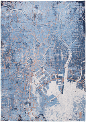 The Louis de Poortere Cities Tokyo Conductive Blue 9314 rug captures the energy and precision of Tokyo's urban landscape. Featuring a modern geometric pattern in shades of deep blue and black, this rug exudes a sleek, sophisticated aesthetic that complements contemporary interiors.