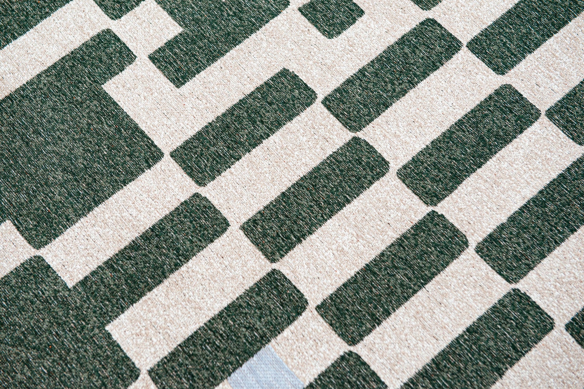 Introducing the Louis de Poortere Craft Chess Deep Green 9339 rug, a stunning addition to any room in your home. Made in Belgium, this rug features a retro geometric design in a deep green color. Available in various sizes including 140 x 200 cm, 170 x 240 cm, and 200 x 280 cm, this jacquard flatweave rug is perfect for your dining room, kitchen, or living room. Not only is it anti-allergic and anti-static, but it is also made from PET material, making it both durable and eco-friendly. Elevate your space with the timeless style and quality craftsmanship of Louis de Poortere.