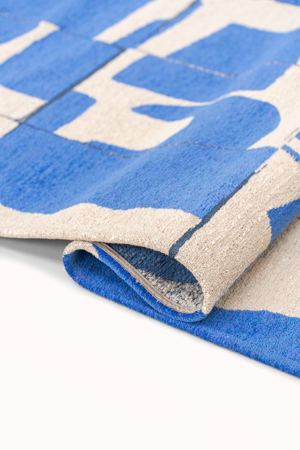 Introducing the Louis de Poortere Craft Papercut Campanula 9358 rug, a modern and stylish addition to any room. Made in Belgium, this rug features a geometric and abstract design in a beautiful shade of blue. Crafted from PET material, it is anti-allergic and anti-static, making it perfect for high-traffic areas like the living room or dining room. Available in various sizes, this jacquard flatweave rug is both durable and easy to clean, making it a practical and fashionable choice for your home. Add a touch of sophistication to your space with the Louis de Poortere Craft Papercut Campanula 9358 rug.