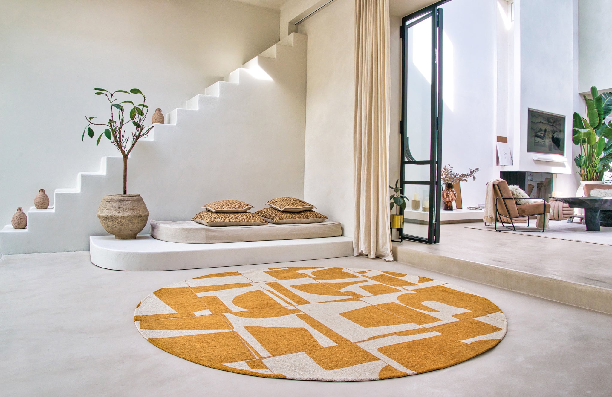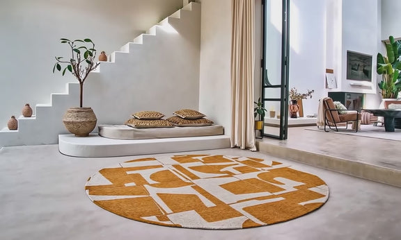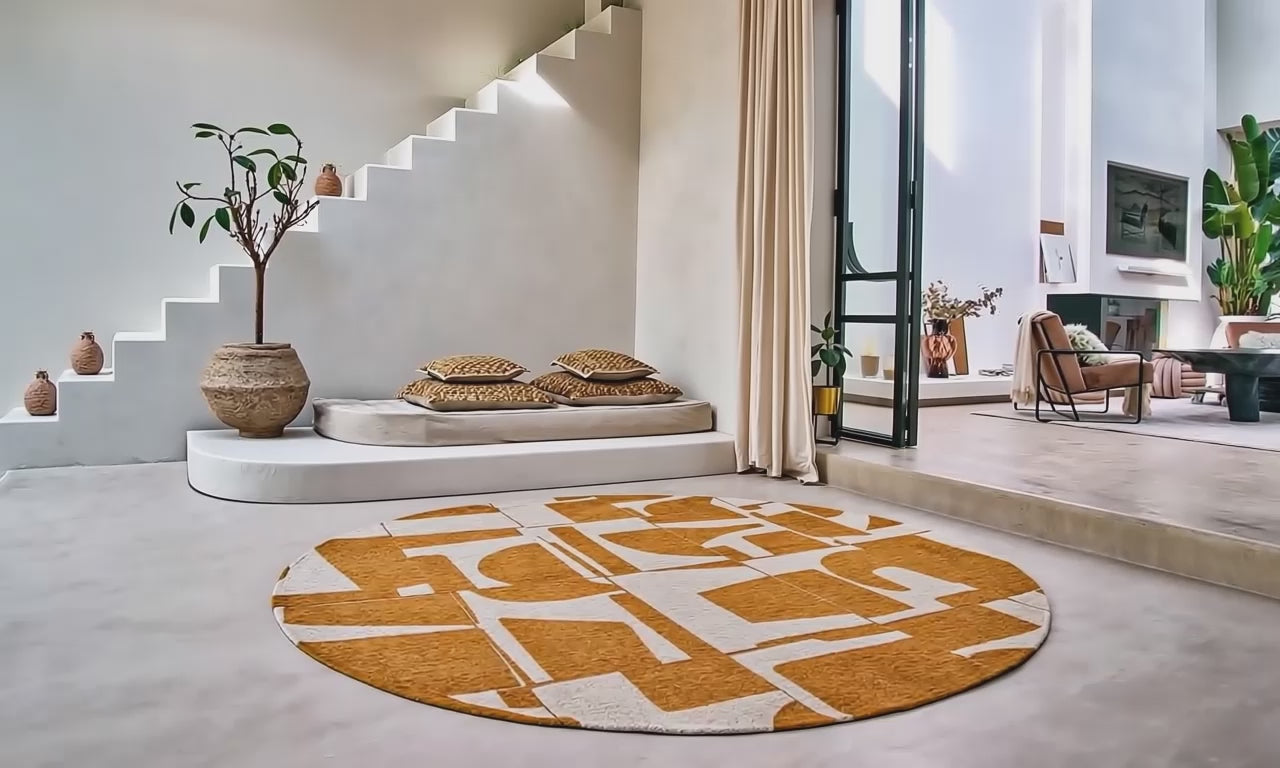 Introducing the Louis de Poortere Craft Papercut Round Curry 9367 rug, a modern and retro addition to any living space. Made in Belgium, this rug is crafted from PET material, making it both durable and eco-friendly. The geometric design adds a stylish touch to any room, while the yellow color brightens up the space. Perfect for dining rooms, kitchens, living rooms, offices, and more, this rug is anti-allergic and anti-static, ensuring a comfortable and safe environment for all. Available in Ø 140 cm and Ø 240 cm sizes, this woven carpet is a versatile and stylish choice for any home.