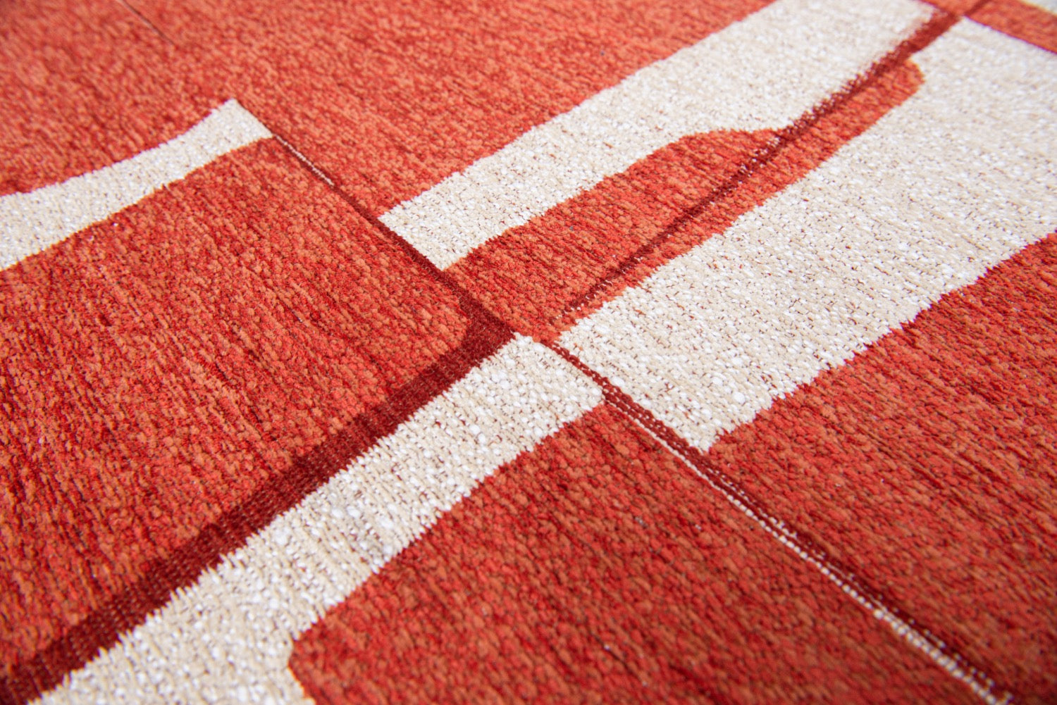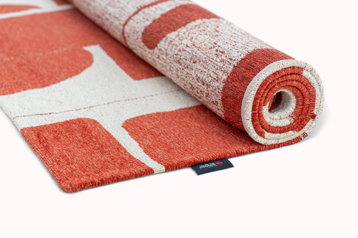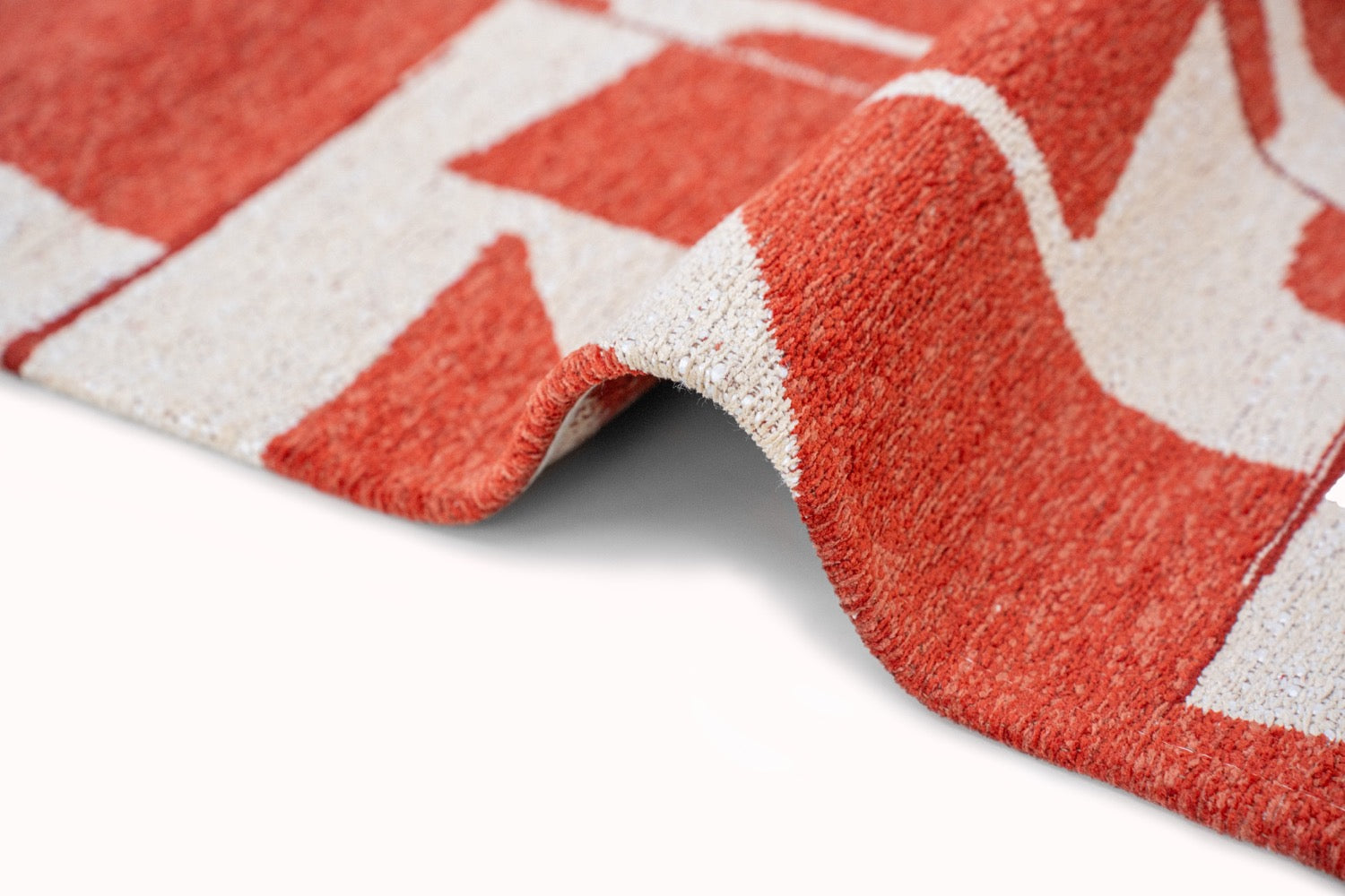 Introducing the Louis de Poortere Craft Papercut Rust 9364 rug, a modern and stylish addition to any room. Made in Belgium, this rug is crafted from PET material, making it both durable and eco-friendly. The geometric and abstract design adds a contemporary touch to your space. Available in various sizes, this jacquard flatweave rug is perfect for the dining room, kitchen, or living room. With anti-allergic and anti-static properties, this rug is not only beautiful but also practical. Elevate your decor with the vibrant orange hues of the Louis de Poortere Craft Papercut Rust 9364 rug.