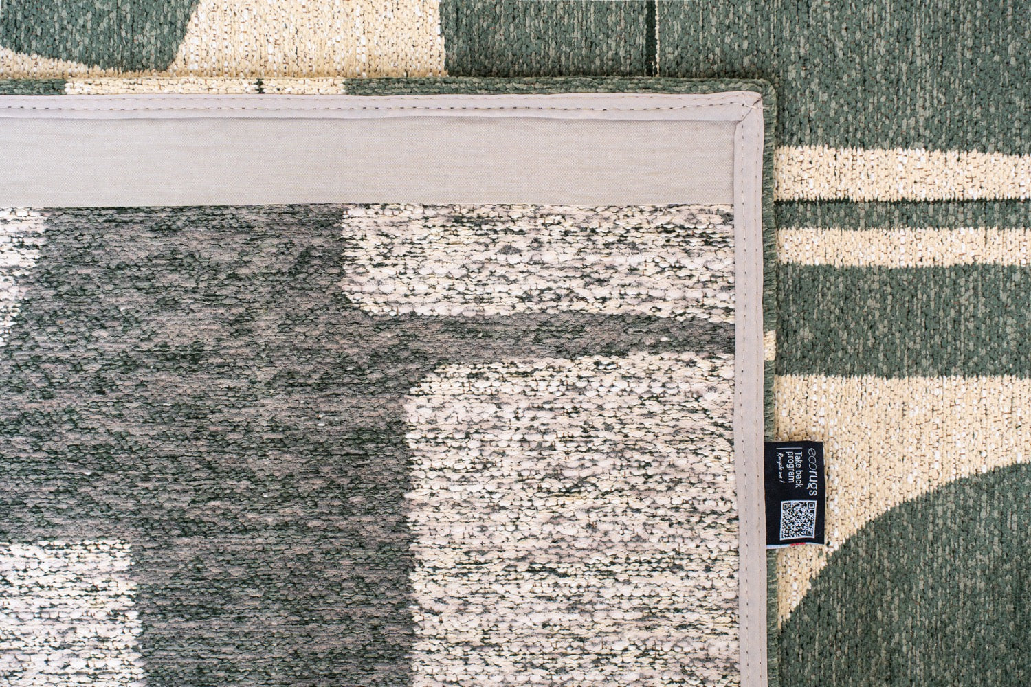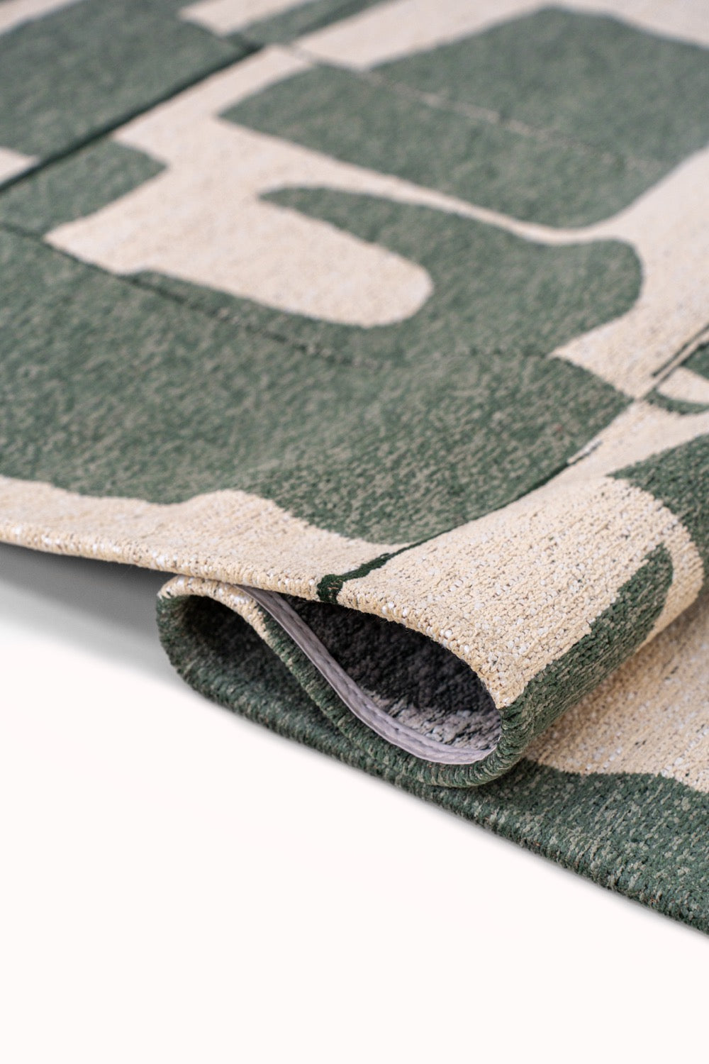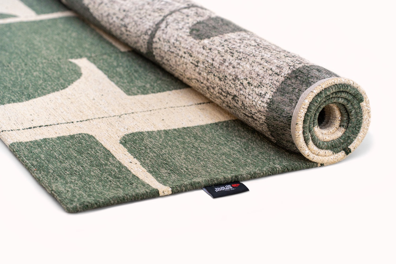 Introducing the Louis de Poortere Craft Papercut Sea Spray 9361 rug, a modern and stylish addition to any room. Made in Belgium, this rug is crafted from PET material, making it durable and easy to clean. The geometric and abstract design adds a contemporary touch to your space. The jacquard flatweave construction ensures quality and longevity. Available in various sizes, this rug is perfect for the dining room, kitchen, or living room. With anti-allergic and anti-static properties, this rug is both practical and stylish. Add a pop of green to your decor with the Louis de Poortere Craft Papercut Sea Spray 9361 rug.
