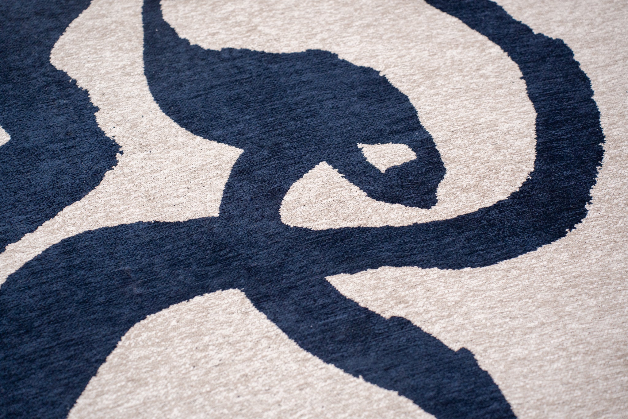 Embrace the mystery and sophistication of deep-sea tones with this luxurious woven rug—shop the Louis de Poortere Craft Ribbon Sea Ink 9849 today!