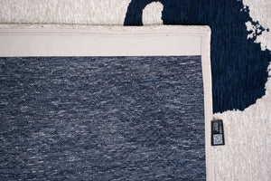 Bring the depth of the ocean into your home with the Louis de Poortere Craft Ribbon Sea Ink 9849. Inspired by the mystical beauty of deep blue waters, this rug blends rich navy, deep indigo, and subtle charcoal tones with a sophisticated ribbon-like texture that plays with light and movement. Expertly woven in Belgium, this modern flatweave rug adds a touch of timeless elegance and artistic depth to any space.
