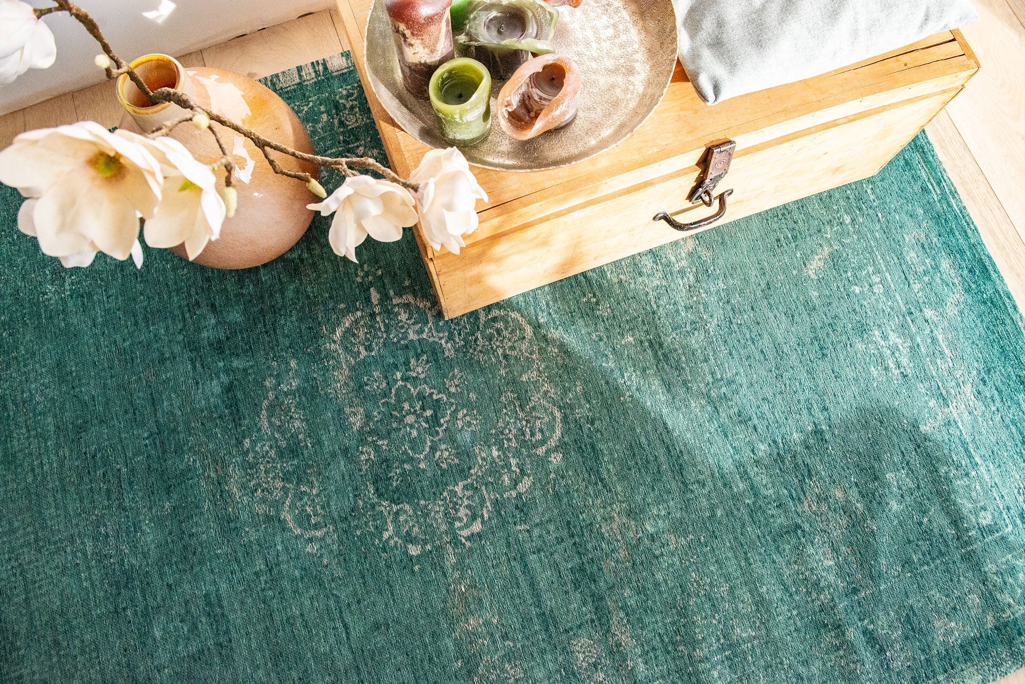 Transform your space with the Louis de Poortere Fading World Medallion Jade rug. This exquisite piece, crafted in Belgium, brings a touch of vintage elegance to any room. The rich green hue and intricate jacquard flatweave design make it a stunning centerpiece for your dining room, living room, or kitchen.