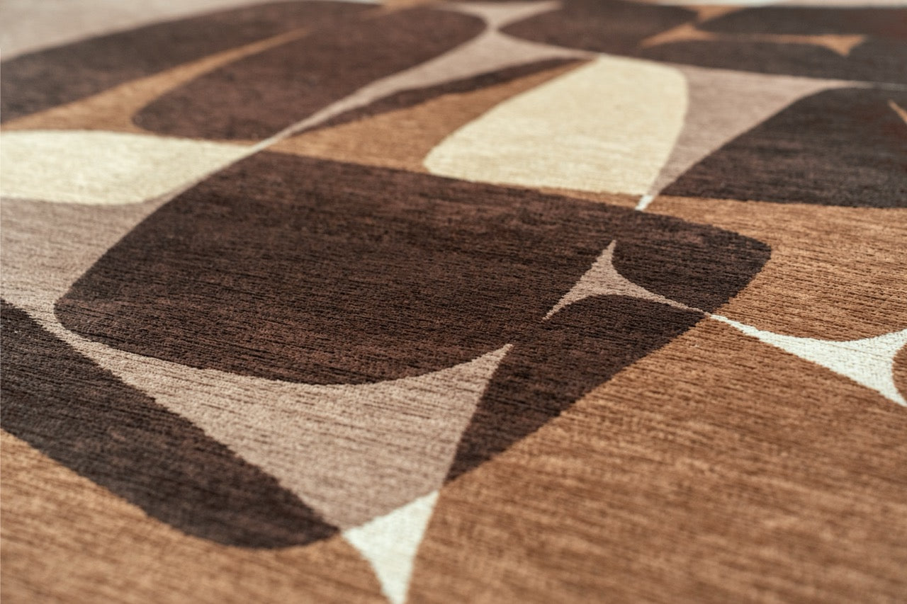 Louis de Poortere Gallery Stones Cookie 2087 is a warm and balanced design that immediately brings a sense of calm into a modern interior. The rounded abstract shapes flow naturally across the surface in layered tones of brown, sand and soft beige. Nothing feels sharp or dominant, which makes this rug easy to live with and pleasant to look at every day.