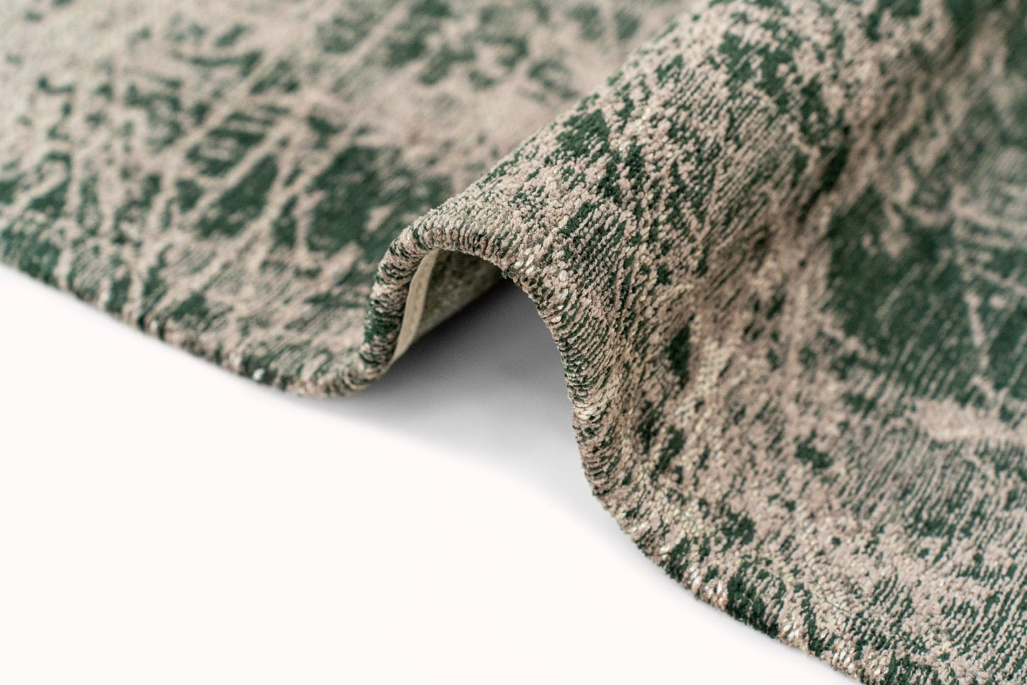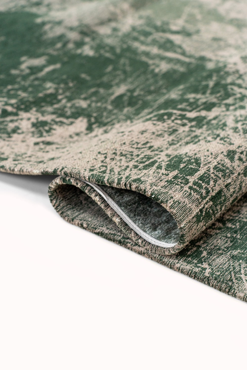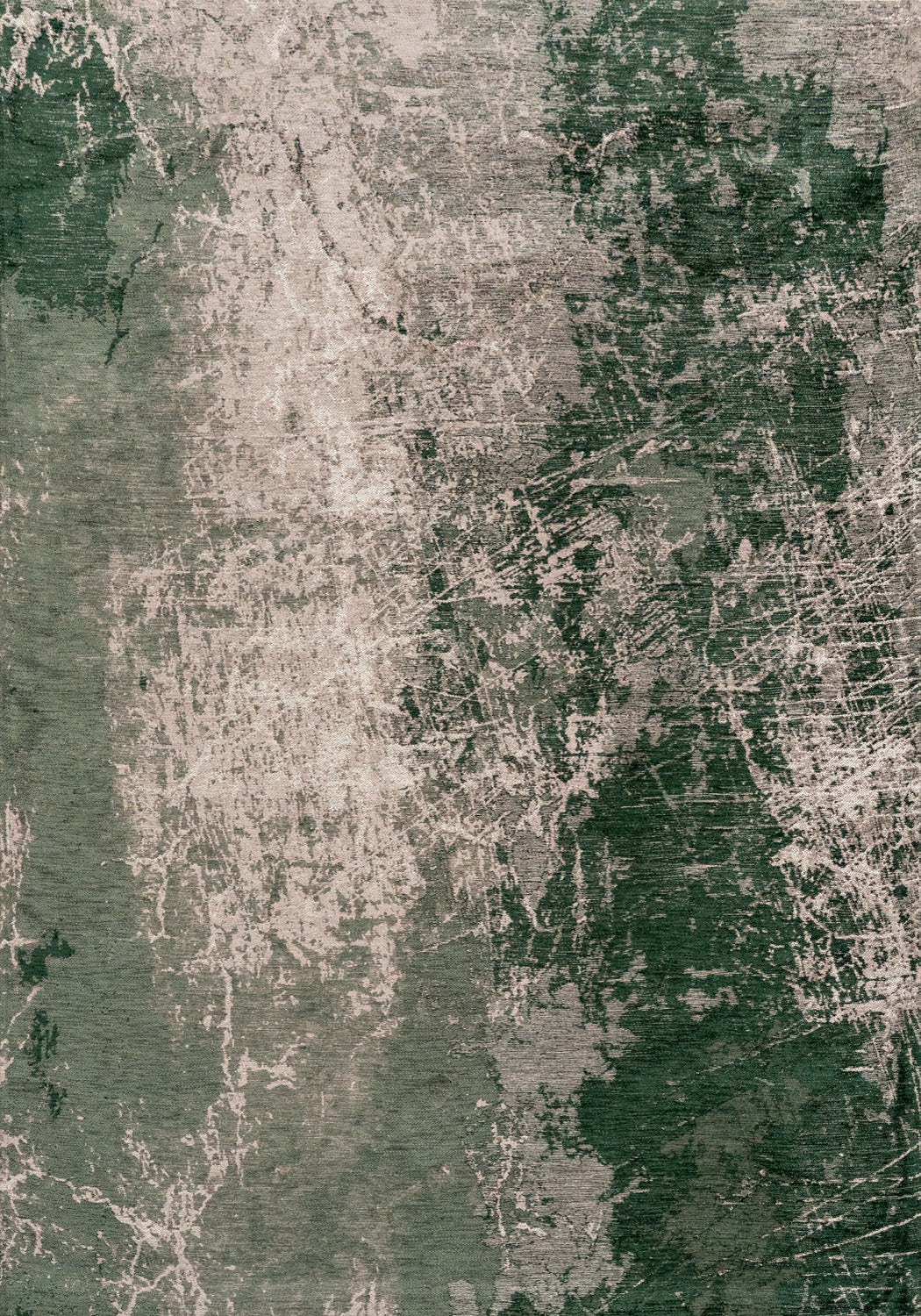 The Louis de Poortere Mad Men Cracks Dark Pine 8723 rug blends the power of nature with modern design. Inspired by the raw beauty of cracked surfaces and weathered earth, this rug features deep green tones layered with subtle black and brown lines—evoking the strength and stillness of ancient forests. The textured "cracks" create a sense of movement and dimension, making this rug a bold, grounding element in any interior.