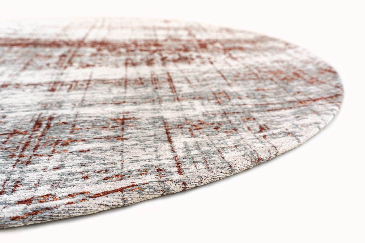 The Louis de Poortere Mad Men Griff Copperfield 8956 rug is a stunning blend of deep copper and earthy tones, creating a warm and sophisticated ambiance. The distressed abstract pattern adds a dynamic texture, making it an eye-catching piece in any modern interior.