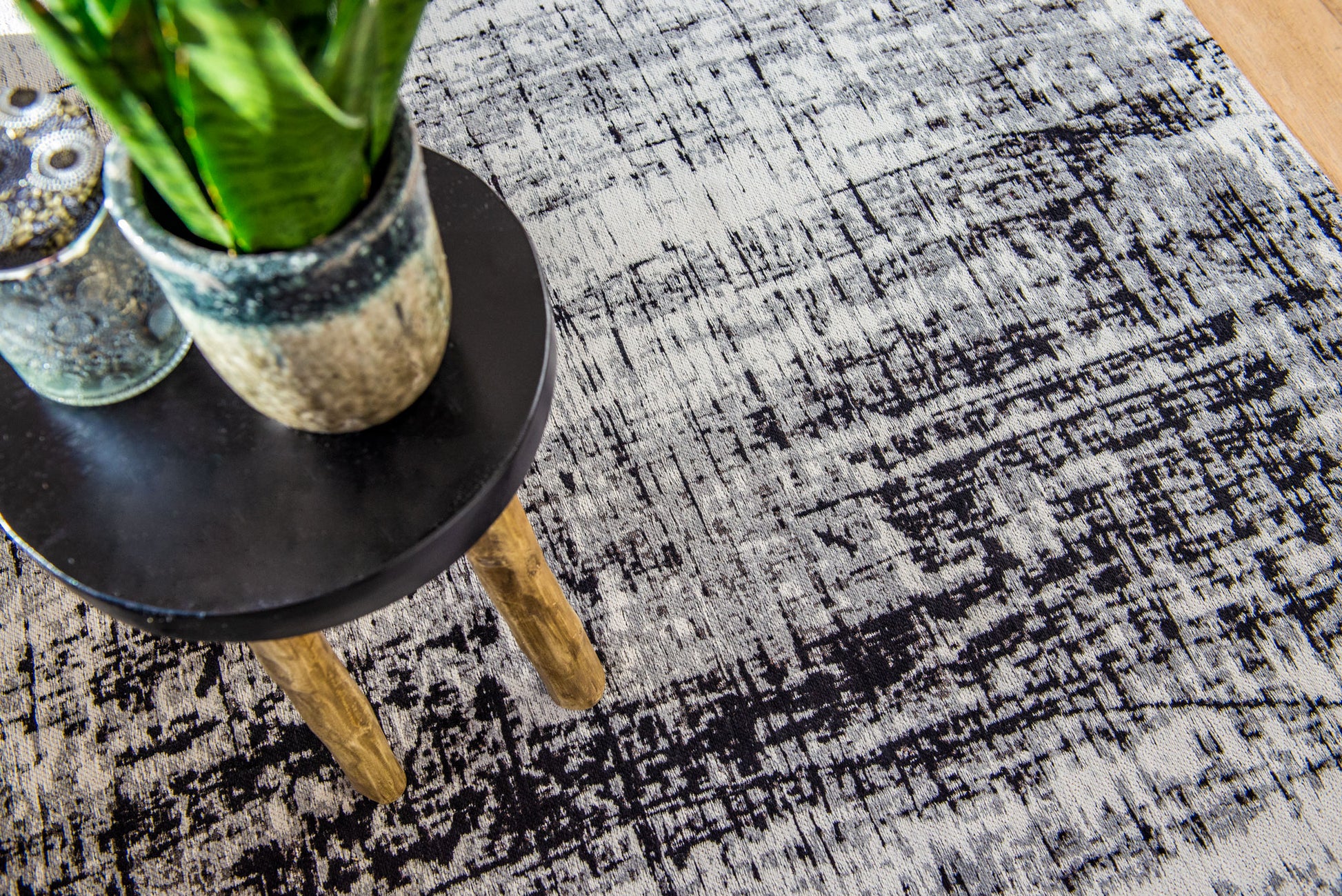 The Louis de Poortere Mad Men Griff Metro 8926 rug is a striking blend of black and white, creating a bold, high-contrast statement for contemporary interiors. Its scratched abstract pattern adds texture and movement, inspired by urban landscapes and modern art.