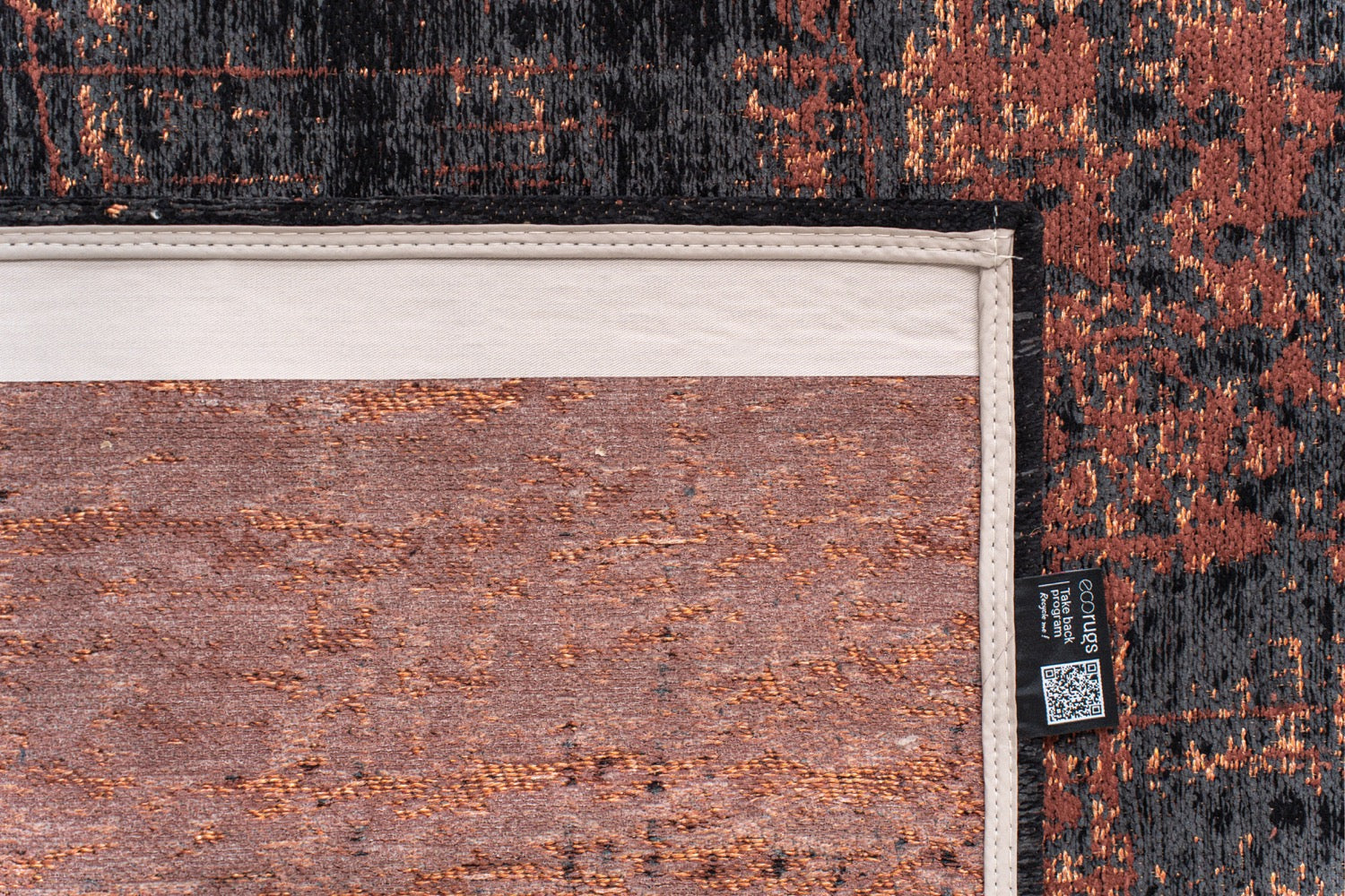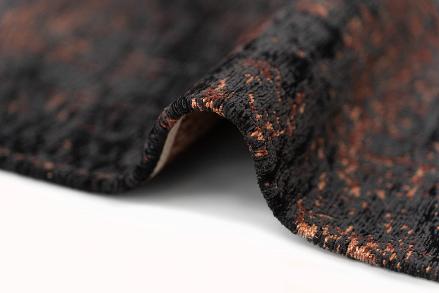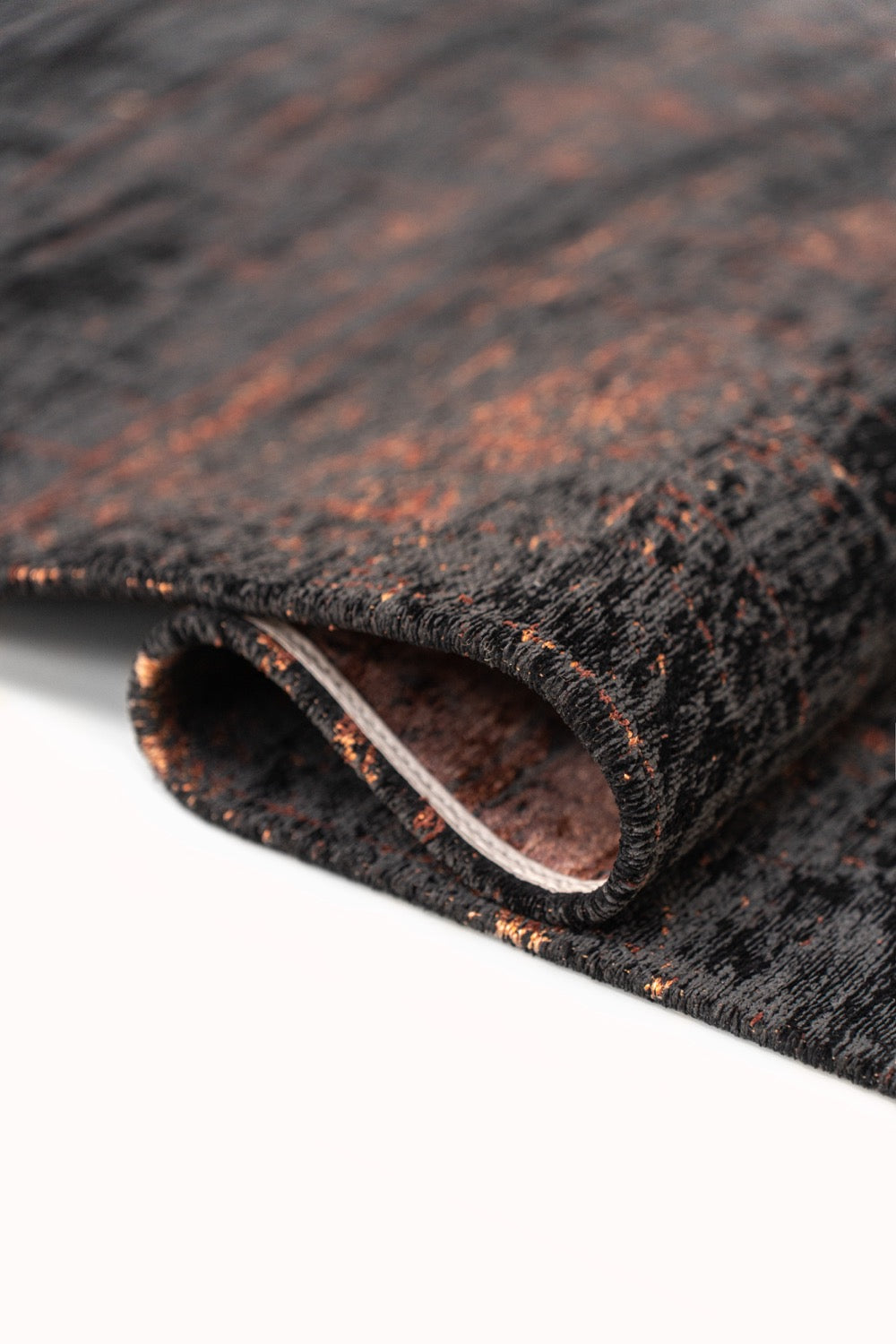 Imagine the warmth and refinement this abstract rug brings to your home. The jacquard flatweave construction offers a unique texture that enhances comfort underfoot while adding a touch of elegance to your decor. The rich copper tones against a sleek black background create a striking visual effect that complements various styles.