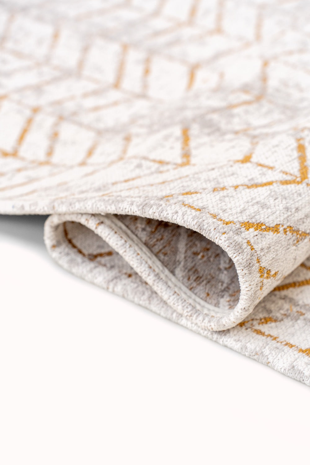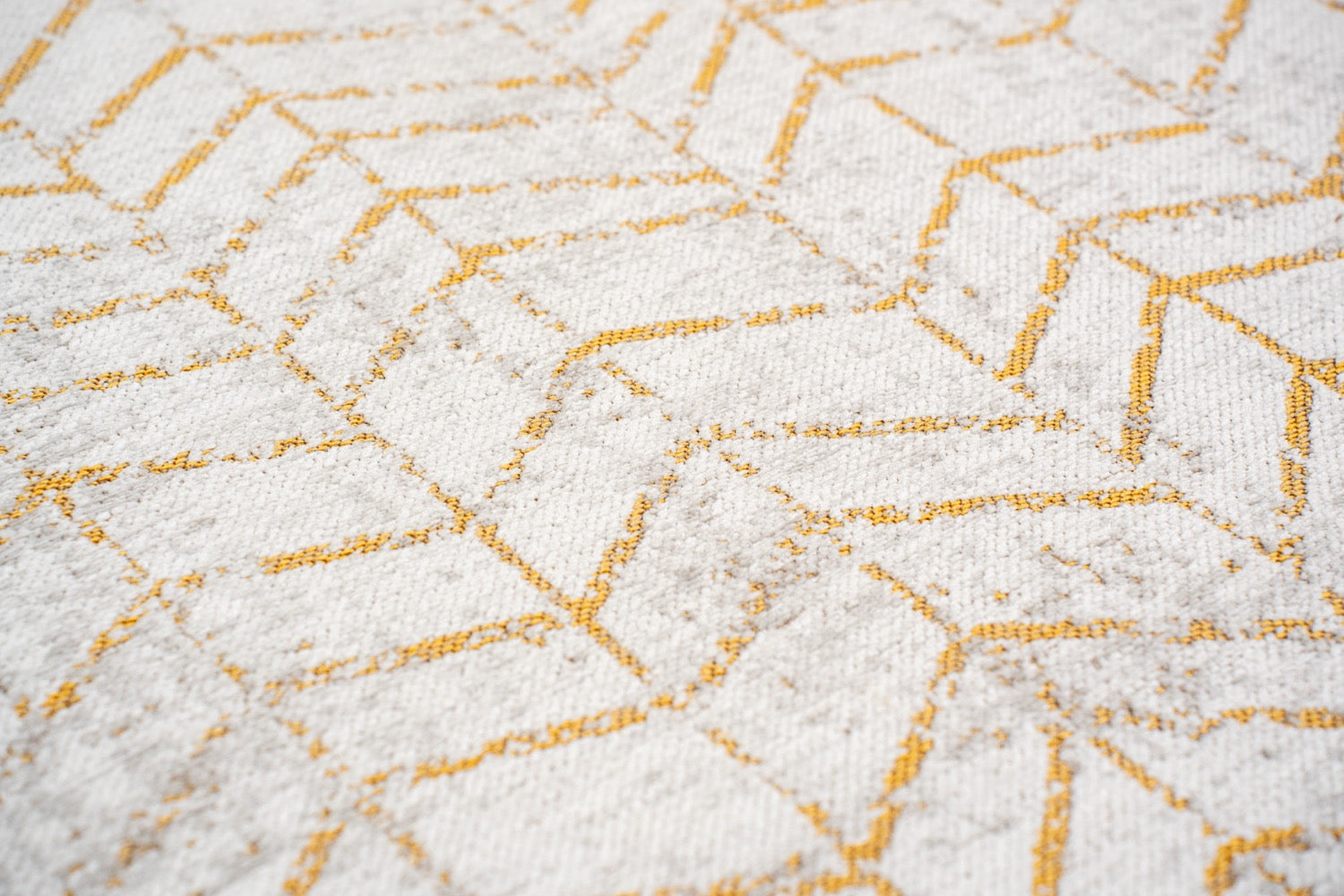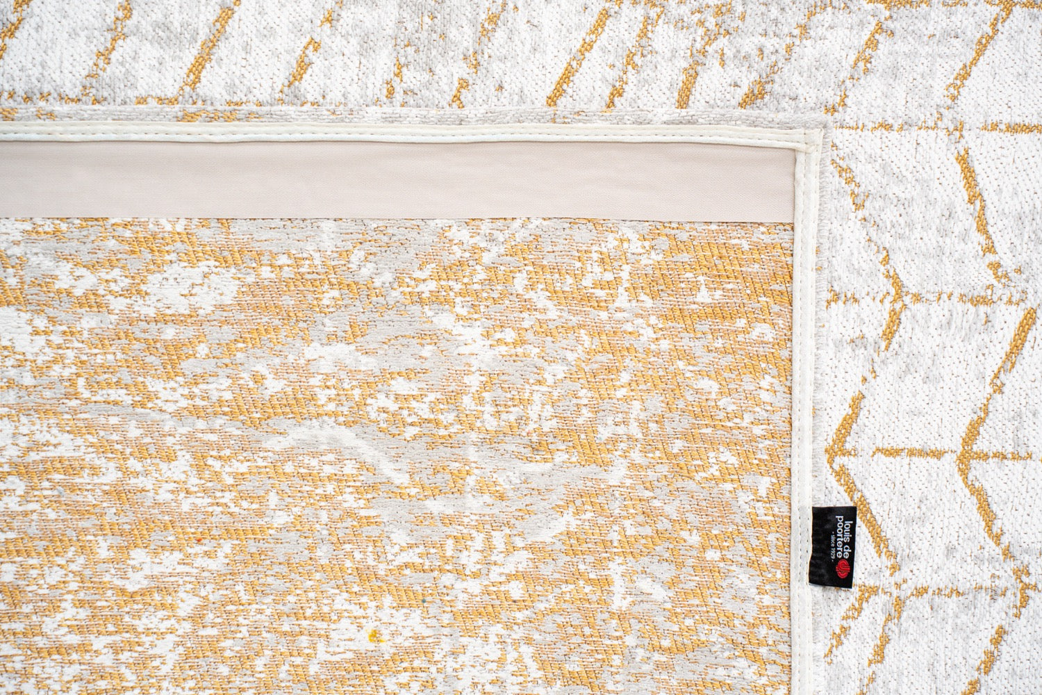 The Louis de Poortere Mad Men Jacob’s Ladder Central Yellow 8928 rug is a bold interpretation of geometric elegance, brought to life through warm golden tones and layered textures. The ladder motif—symbolizing progress and aspiration—is rendered in rich ochre, honey, and soft beige, creating a sense of warmth and light. This design adds an uplifting and energizing touch to any room, while maintaining a sophisticated, structured aesthetic.