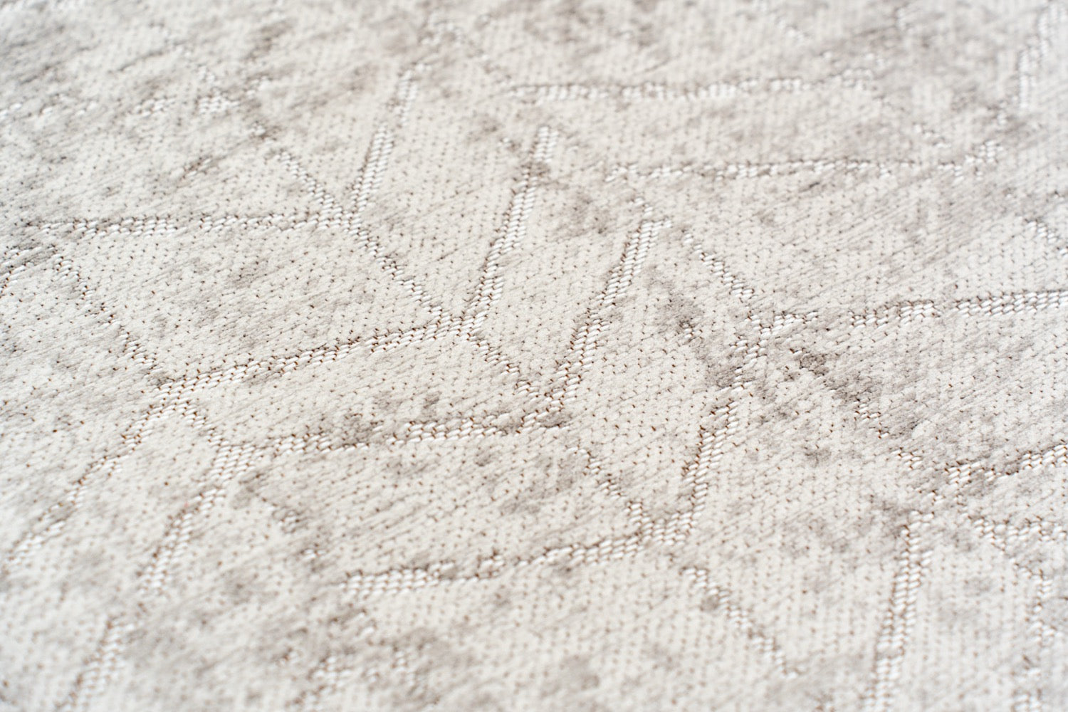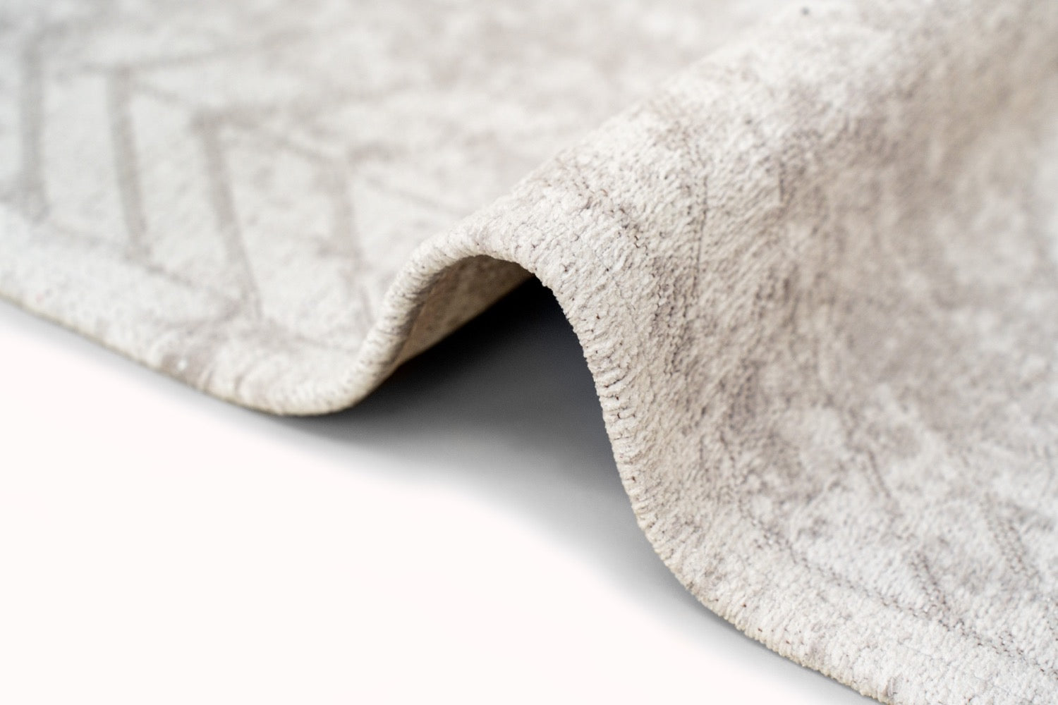 The Scandinavian, retro, and modern influences come together in a harmonious palette of white, making it a versatile addition to various interior themes. The jacquard flatweave construction offers a sleek profile, making it easy to maintain and providing a chic aesthetic.