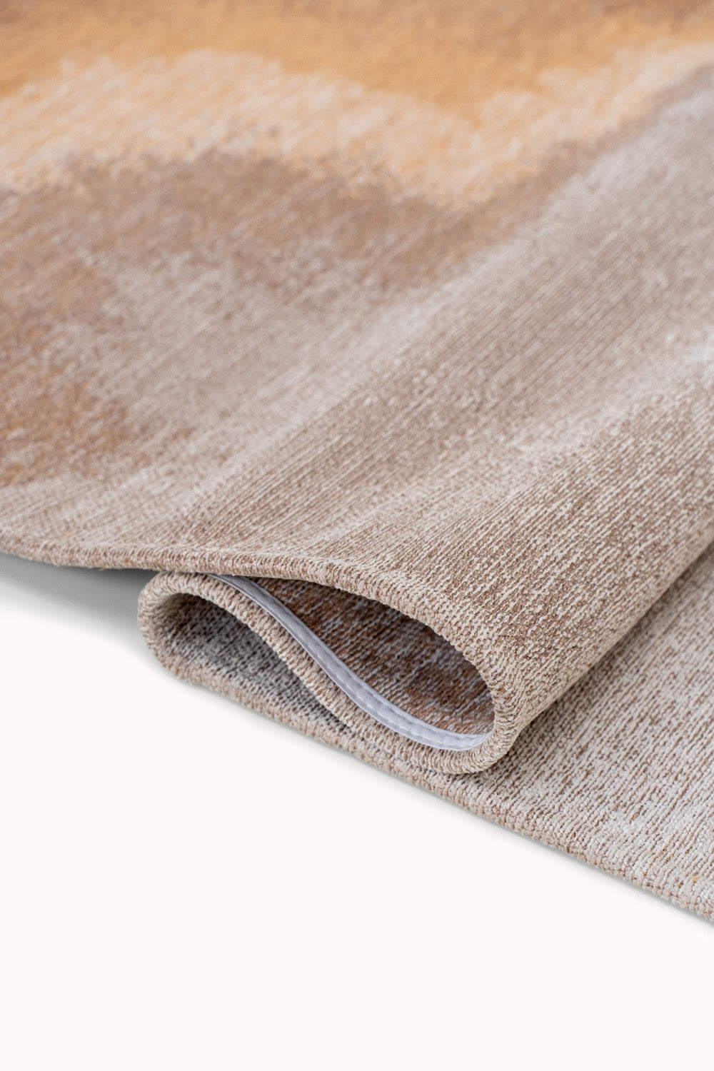 The Louis de Poortere Meditation Lagoon Chestnut 9326 rug radiates earthy warmth and natural elegance. With rich chestnut browns, soft terracotta, and subtle taupe tones flowing through its abstract design, this rug evokes the grounded feeling of walking through an autumn forest. The layered brushstroke effect creates gentle movement and organic texture, making it a refined yet cozy addition to your home.