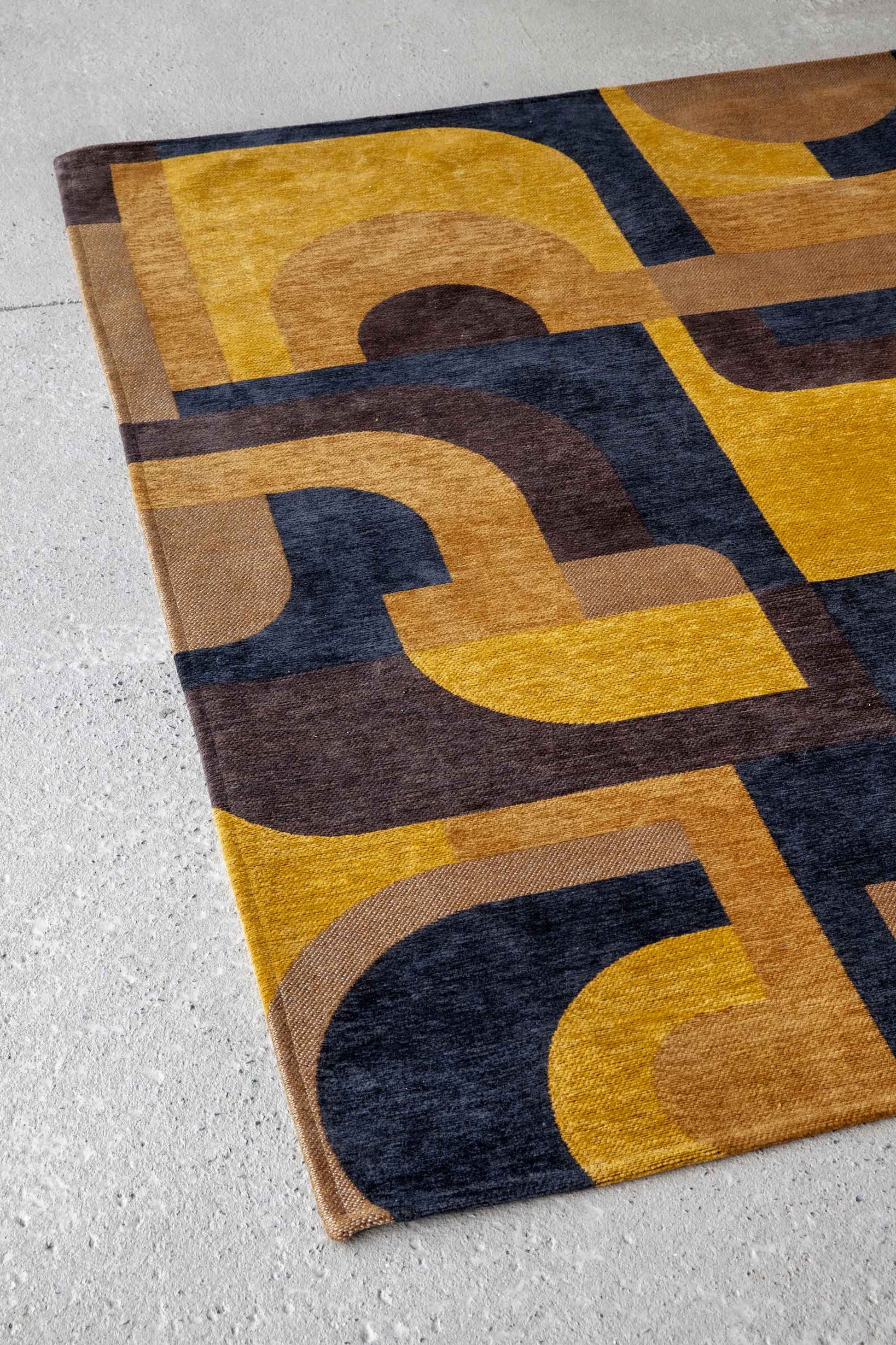 The Louis de Poortere Nuance Module Yellow Meyer 9210 rug adds a bold, vibrant yellow tone to any room, featuring a striking geometric pattern. This piece brings a contemporary yet retro flair with its warm yellow tones and intricate design, offering an eye-catching statement for your interior. Crafted with eco-friendly PET fibers, this rug is both a stylish and sustainable option for modern living spaces.