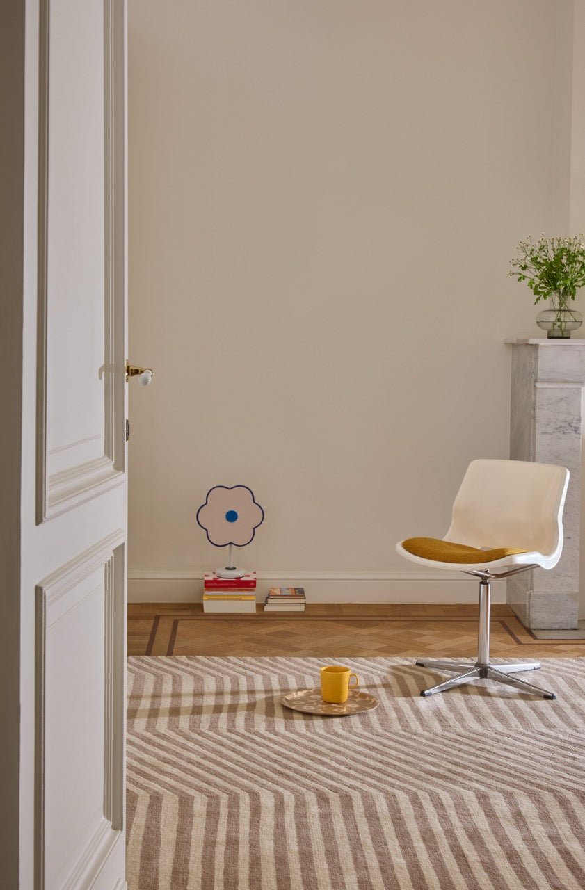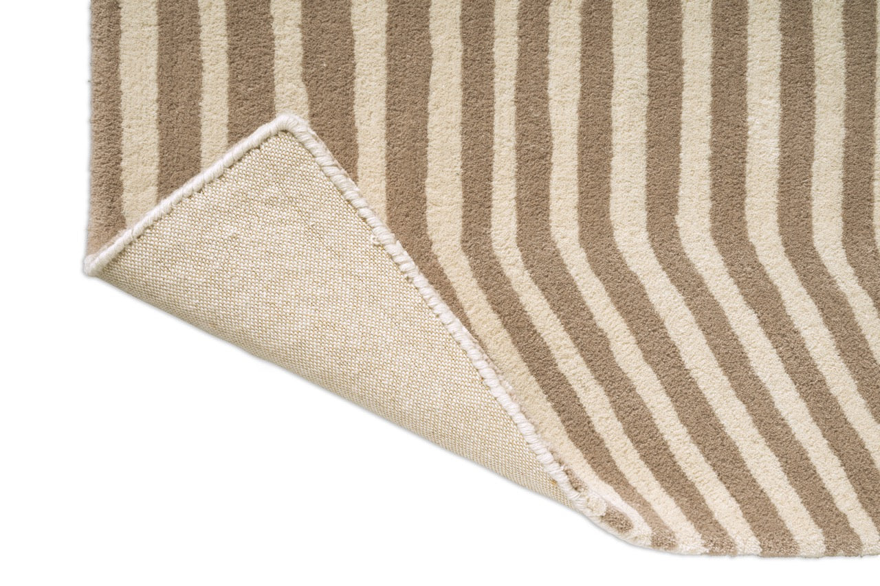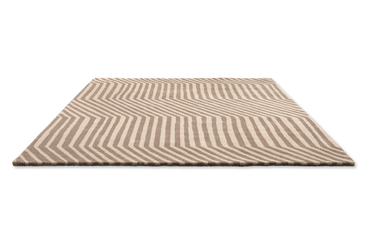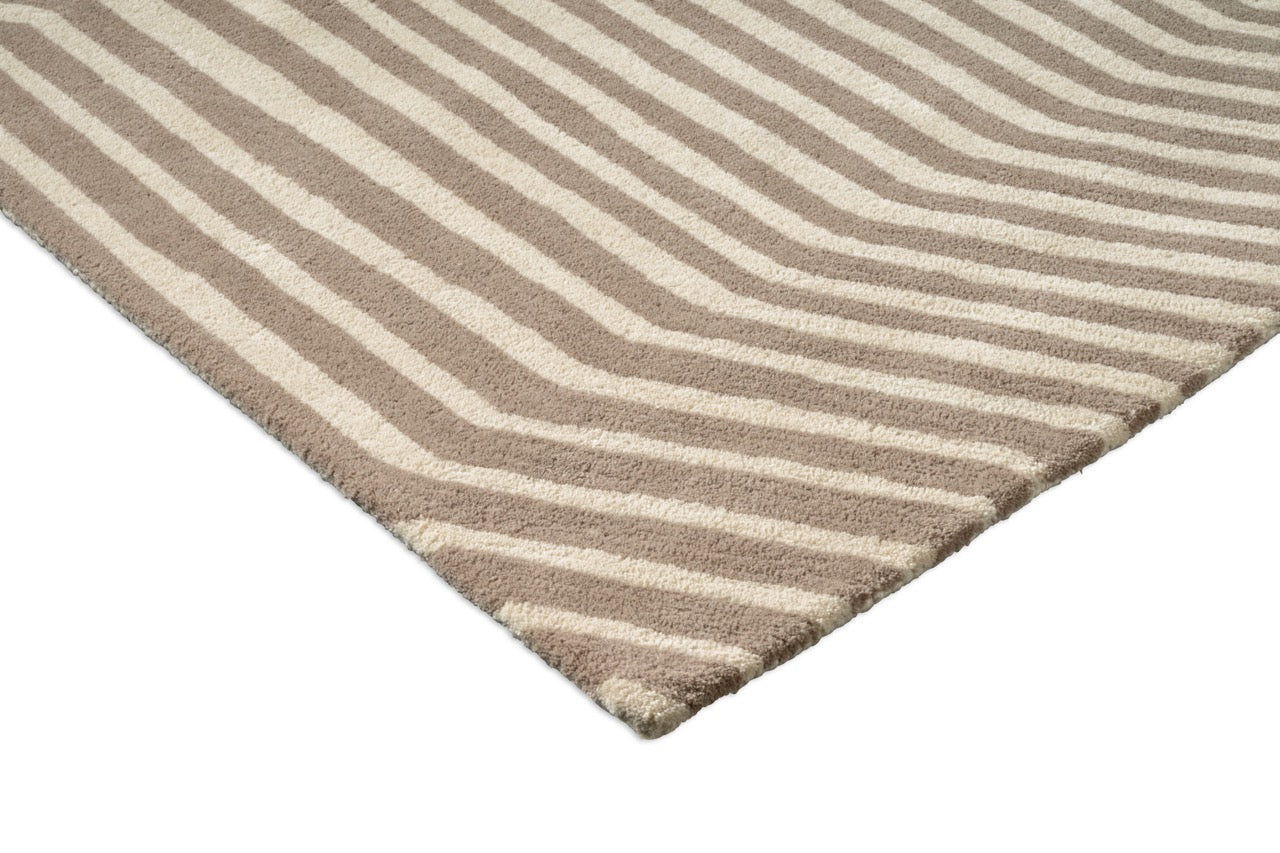 The Marimekko Kalasaaski Greige rug is a quiet statement piece, designed to bring rhythm and calm into modern living spaces. At first glance, the pattern feels simple: soft diagonal stripes in warm greige tones. Look a little longer, and you notice the movement — subtle, balanced and easy to live with.