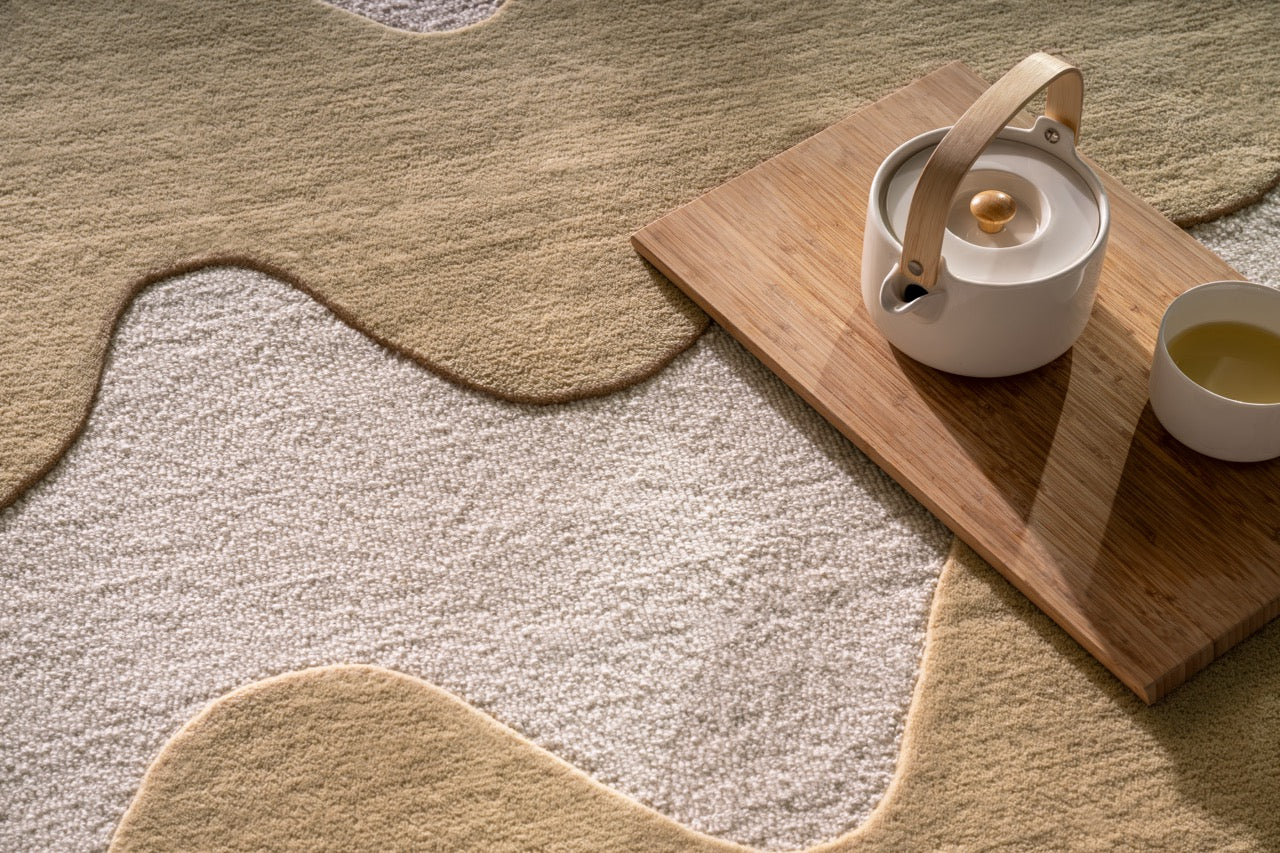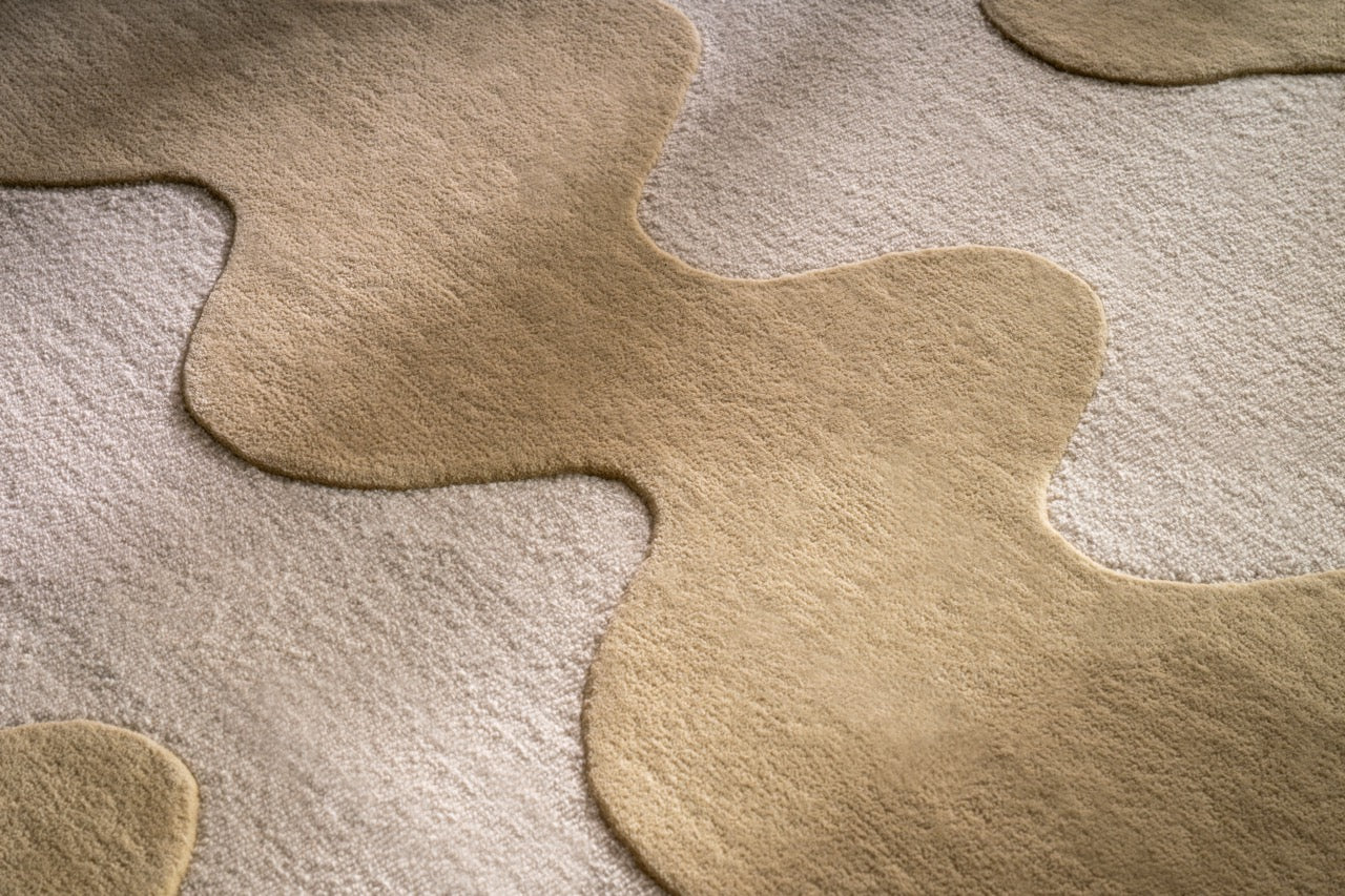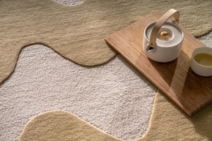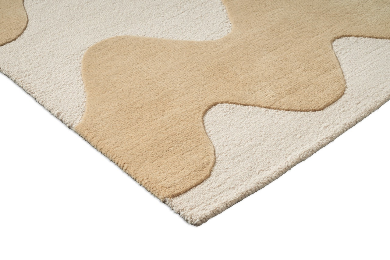 Hand-tufted in India from pure wool, this rug has a dense yet gentle surface that feels comfortable underfoot. The sculpted lines create a subtle play of height and texture, allowing the pattern to stand out without becoming visually busy.