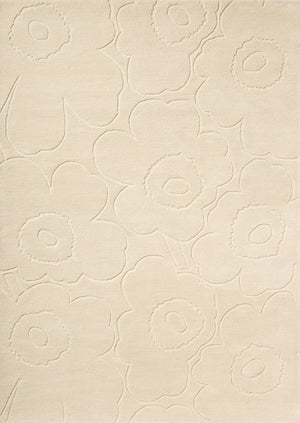 The Marimekko Piirto Unikko Natural White rug offers a refined interpretation of the iconic Unikko flower. Instead of colour contrast, this design relies on line, relief and texture. The floral outlines are subtly carved into the surface, creating a calm, architectural rhythm that feels light, modern and quietly expressive.