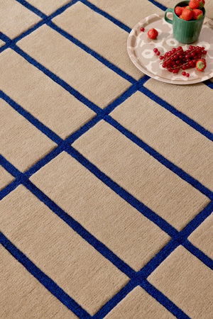 The Marimekko Tiiliskivi Bright Blue 132908 is a hand-tufted wool rug that brings a bold geometric statement to your interior. Featuring a clean, grid-like pattern in vibrant blue against a neutral beige background, this rug adds a touch of modern sophistication to any room.