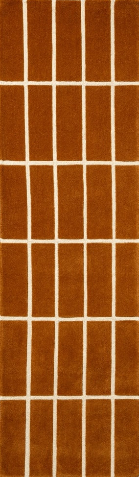 The Marimekko Tiiliskivi Brown 132905 is a warm, graphic rug built around the iconic brick pattern that defines the Tiiliskivi design. The deep brown tone gives the structured layout a softer, more grounded presence, making it easy to combine with both modern and classic interiors.