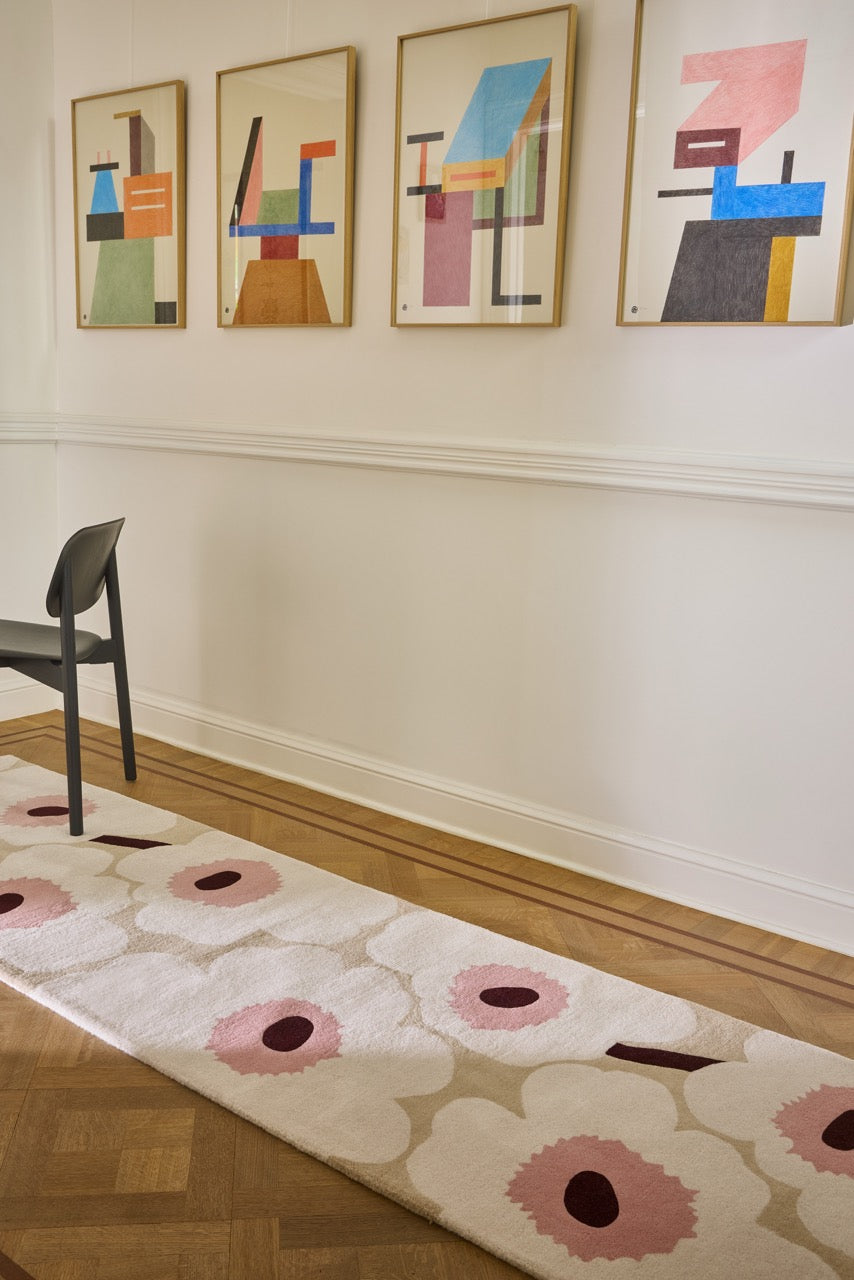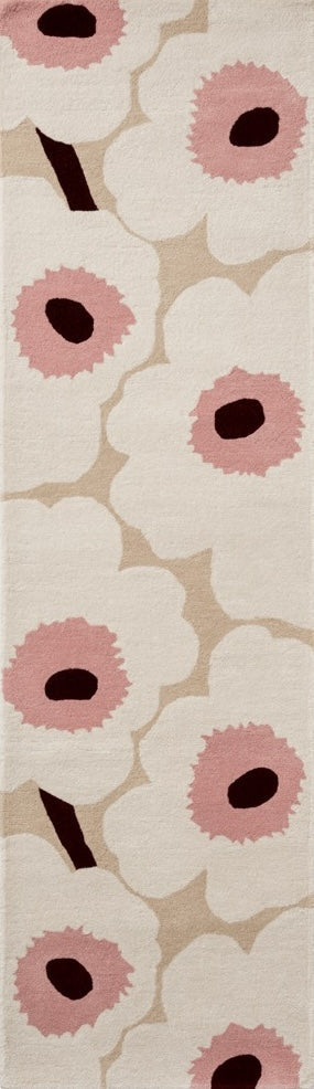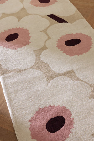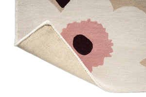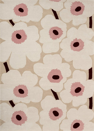 The Marimekko Unikko Beige Pink 132402 translates one of the world’s most recognisable floral patterns into a soft, tactile rug that feels calm, warm and quietly expressive. The familiar Unikko flowers appear here in a refined beige base, gently contrasted with soft pink accents and deeper centres, creating a balanced look that never overwhelms the space.