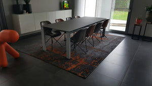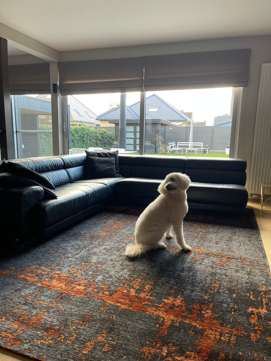 Introduce warmth and sophistication with the Mart Visser Prosper Copper 65. This flatwoven rug features a deep black base contrasted by a striking copper abstract pattern, woven from a resilient blend of cotton, chenille, and polyester. It effortlessly combines bold design with everyday durability.