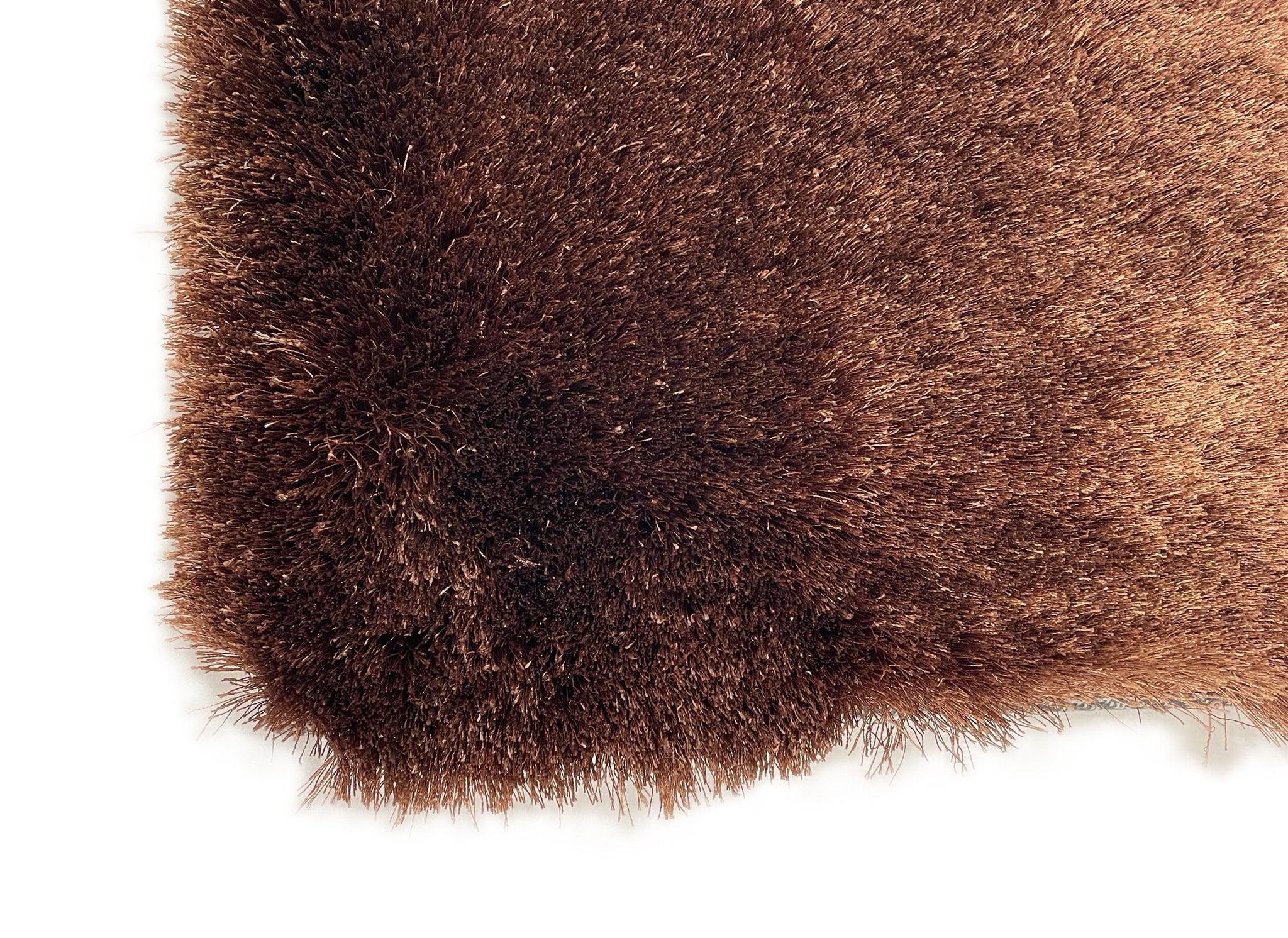 The dense polyester pile provides a luxuriously soft feel underfoot, while the vibrant copper hue radiates warmth and depth. The subtle sheen enhances the rug’s rich tones, making it a striking centerpiece for any room.
