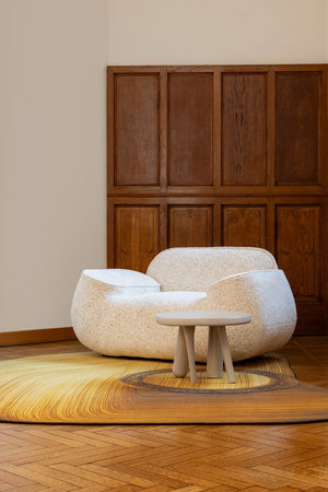 Its irregular form breaks away from the expected, adding movement and softness to angular spaces. The bold design draws the eye and instantly defines the room, making it perfect for artistic interiors, contemporary spaces, or high-concept lounges.