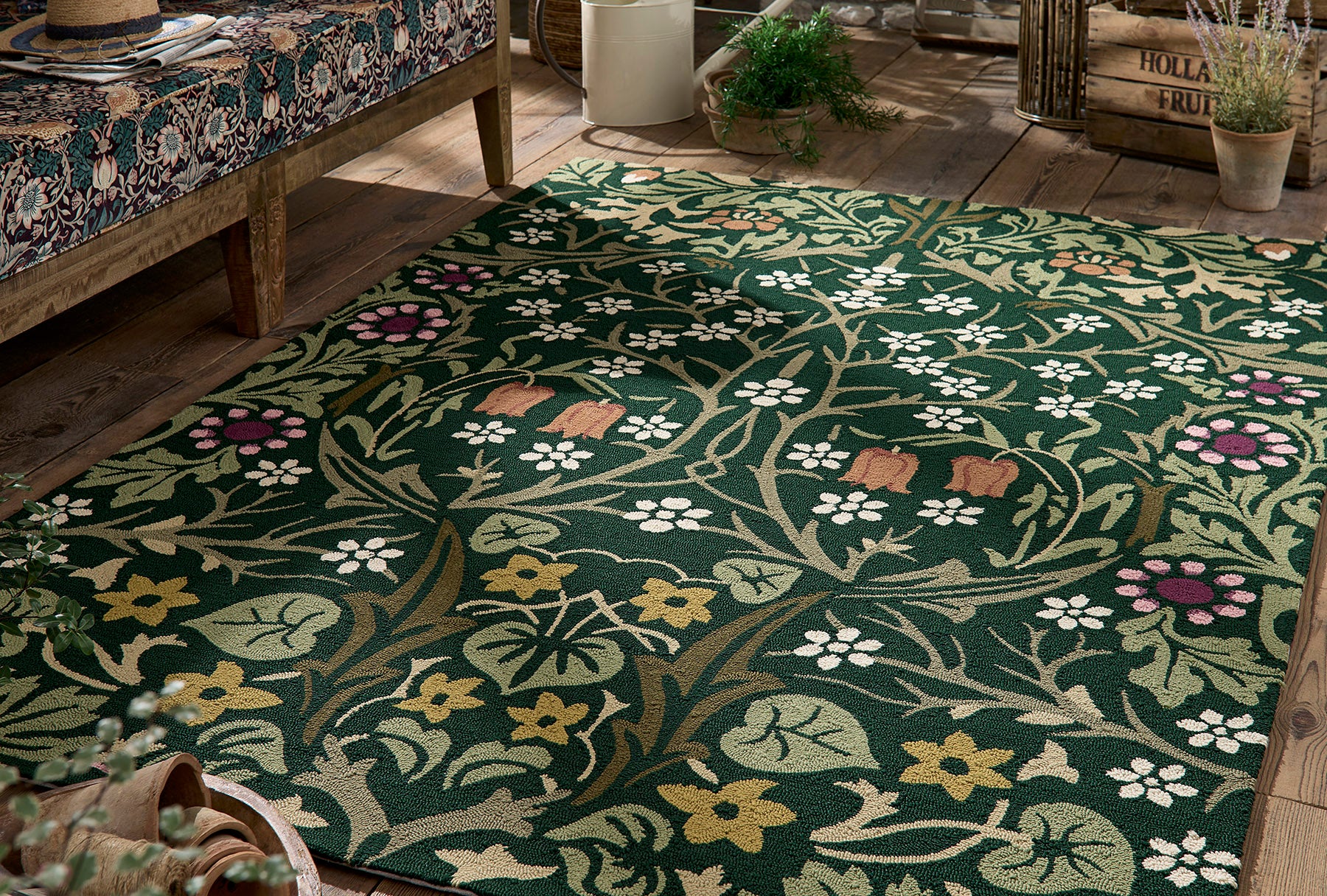 Upgrade your outdoor living with this weatherproof flatweave rug featuring Morris & Co’s iconic Blackthorn motif in rich, earthy hues. Designed to withstand the elements while bringing nature’s artistry to your patio or garden.
