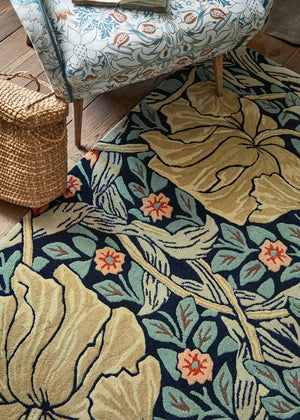 Enrich your space with the Morris & Co Pimpernel Indigo 28818, a hand-tufted wool rug that brings the iconic Pimpernel pattern to life in striking indigo shades. This rug adds a bold yet elegant statement to any room, combining classic design with plush comfort.
