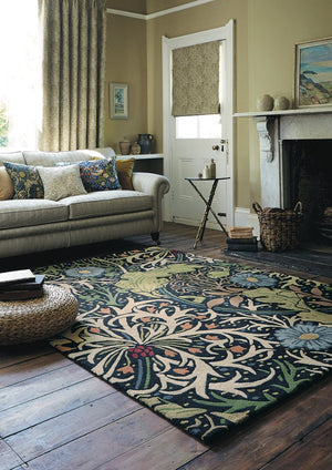 Introduce a striking touch of nature with the Morris & Co Seaweed Ink 28008. This hand-tufted wool rug features an intricate seaweed pattern rendered in rich ink blue hues, blending classic artistry with contemporary flair to elevate your living space.