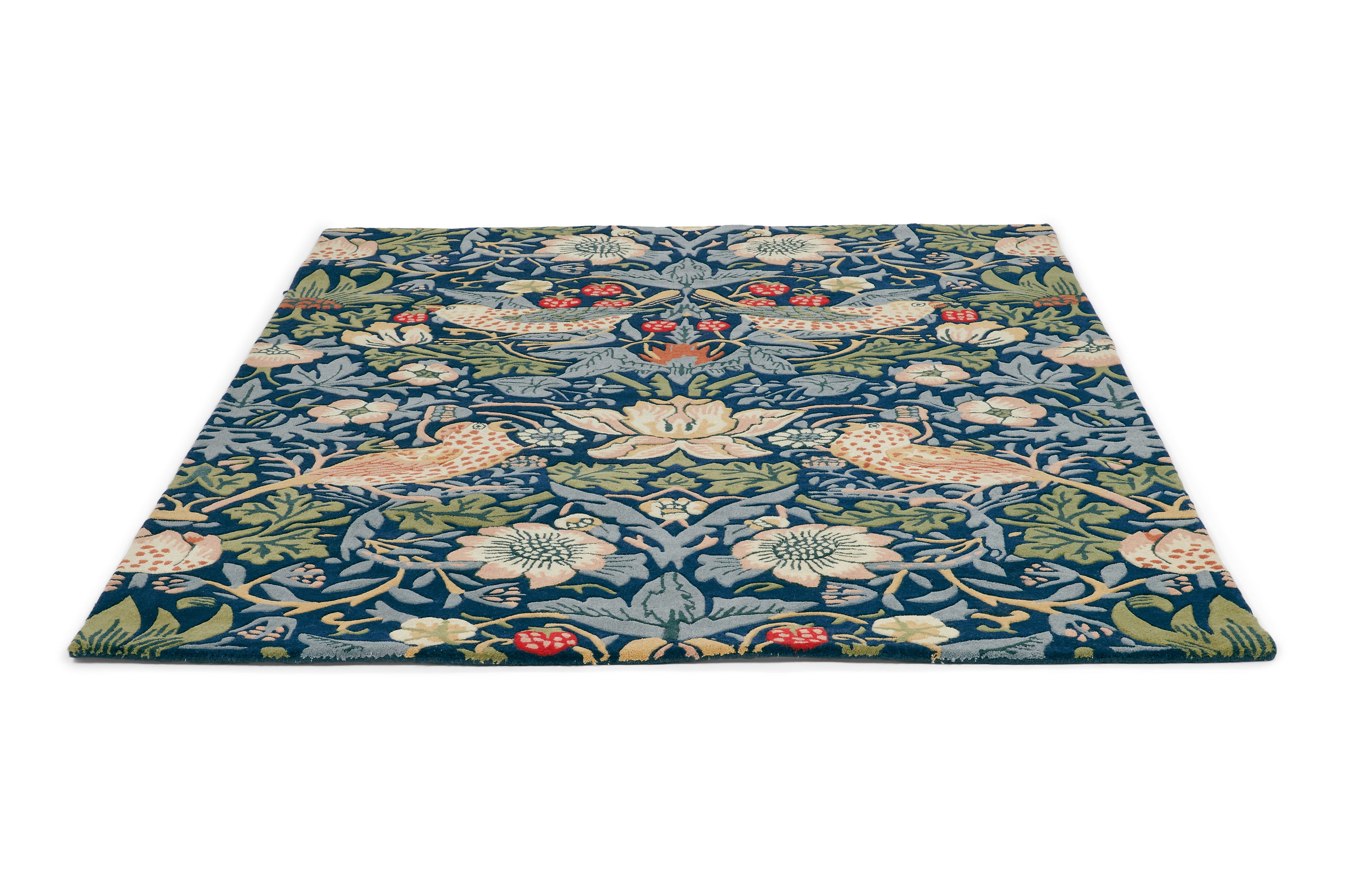 Elevate your interiors with the Morris & Co Strawberry Thief Indigo 27708. This hand-tufted wool rug showcases the timeless Strawberry Thief pattern in rich indigo hues, blending heritage craftsmanship with contemporary sophistication.