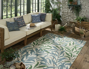 Transform your outdoor spaces with the Morris & Co Willow Boughs Leafy Arbor 428607. This weather-resistant flatweave rug features an elegant leafy arbor pattern, rendered in natural tones to bring a touch of refined nature to your patio, terrace, or garden.