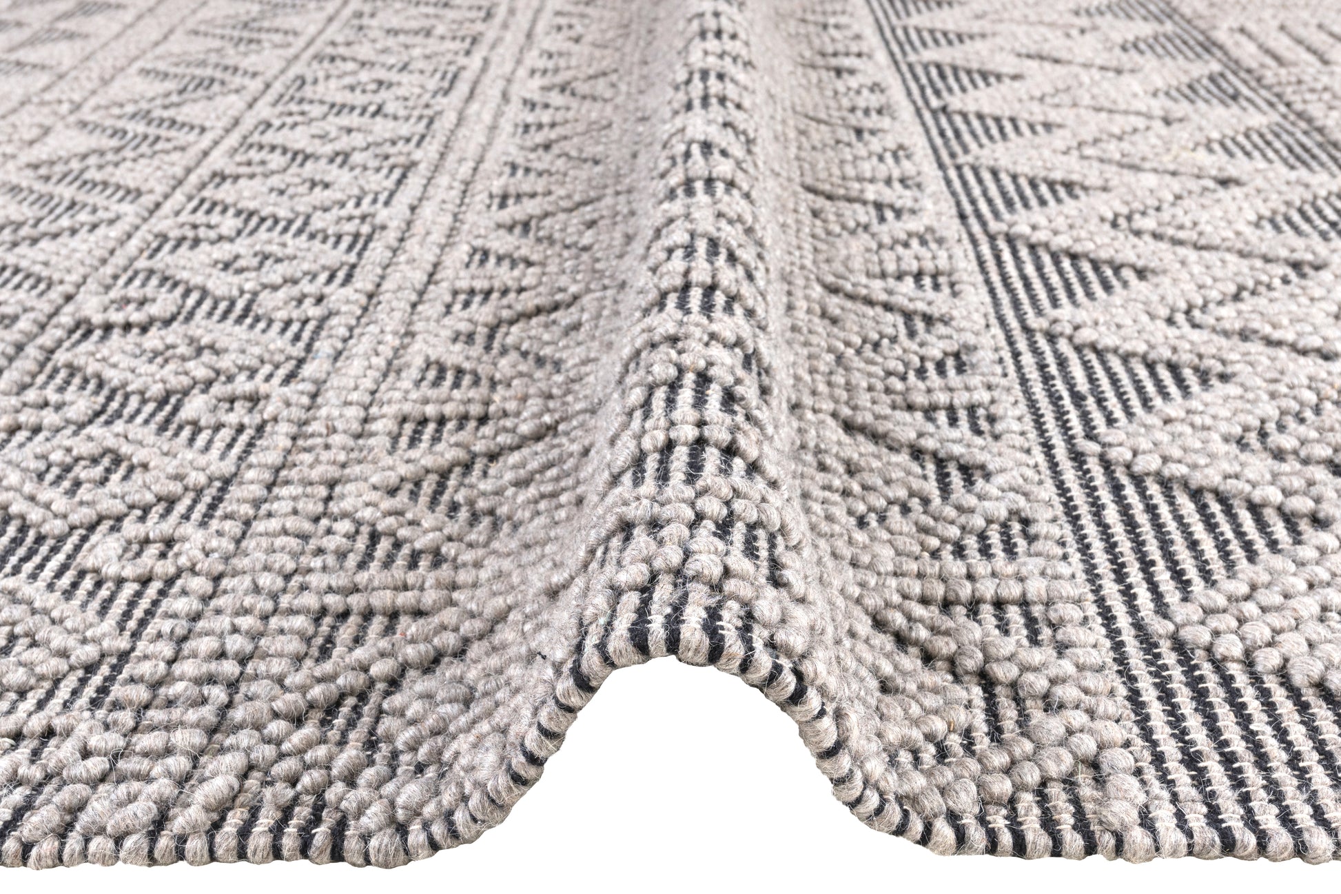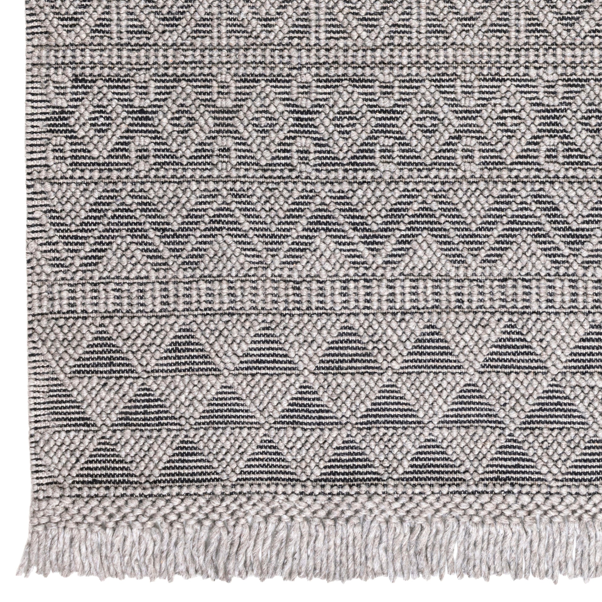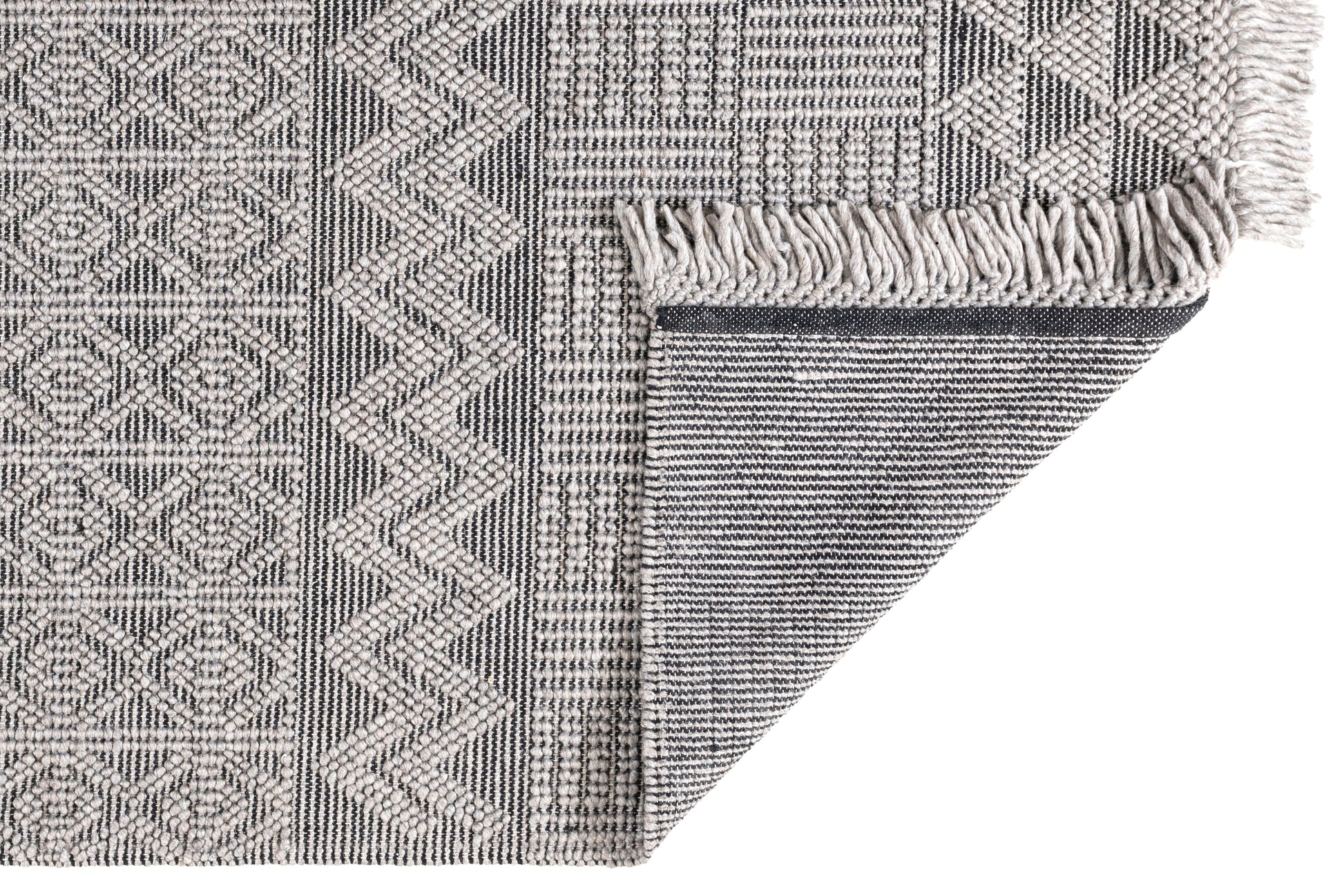 Introducing the Nourison Anya 01 Grey Black rug, handwoven in India with high-quality wool. This modern and bohemian rug features a unique ethnic and geometric design with stripes, adding a touch of style to any living room. Available in various sizes including 120 x 170 cm, 160 x 220 cm, and 200 x 280 cm, this rug is anti-allergic and anti-static, making it a practical and stylish choice for your home décor. Add a touch of sophistication with the Nourison Anya 01 Grey Black rug.