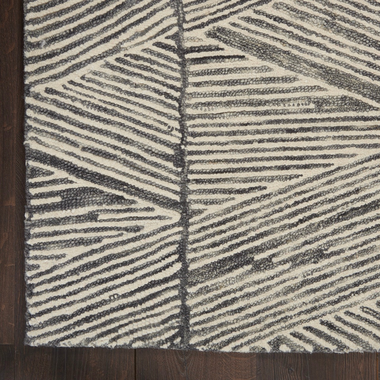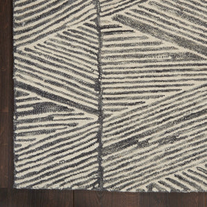 Introducing the Nourison Colorado Grey White CLR01 rug, handwoven in India with high-quality wool. This modern piece features a geometric design in ivory, perfect for adding a touch of bohemian style to your living room. Available in various sizes, this rug is anti-allergic and anti-static, making it both stylish and practical for any home. Elevate your space with the Nourison Colorado rug today.