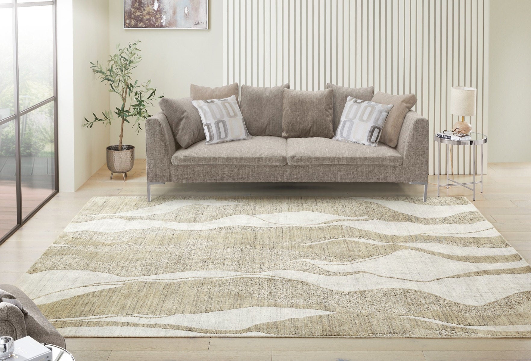 Introducing the Nourison Dune Ivory Mink rug, a modern and stylish addition to any living or dining room. Made in India, this rug features a unique abstract design in a neutral beige color, perfect for complementing any decor. Crafted from a blend of viscose and wool, this rug is not only soft and luxurious but also anti-allergic and anti-static. Available in two sizes, 170 x 240 cm and 244 x 305 cm, this woven carpet is sure to add a touch of elegance to your home. Upgrade your space with the Nourison Dune Ivory Mink rug today.