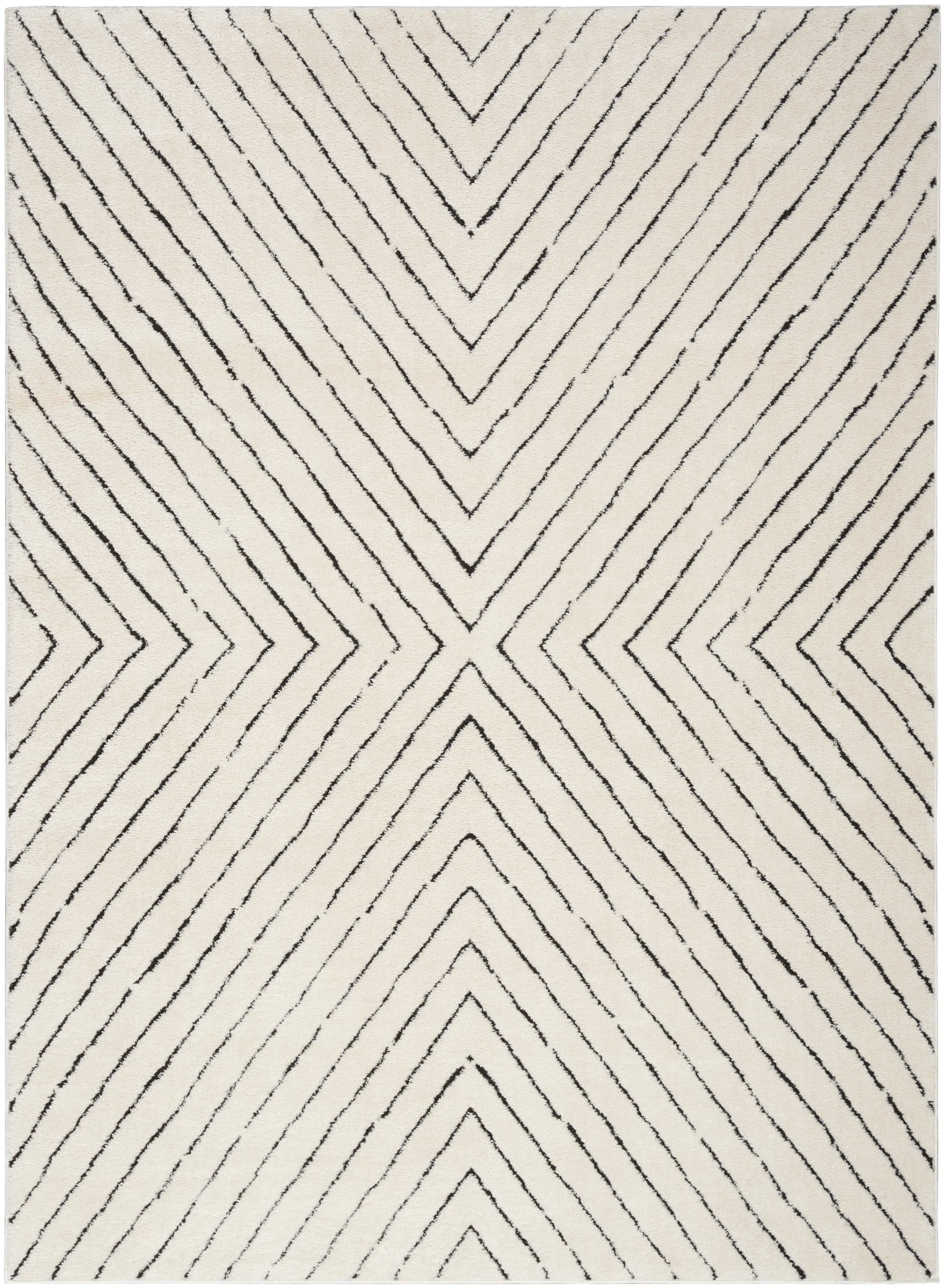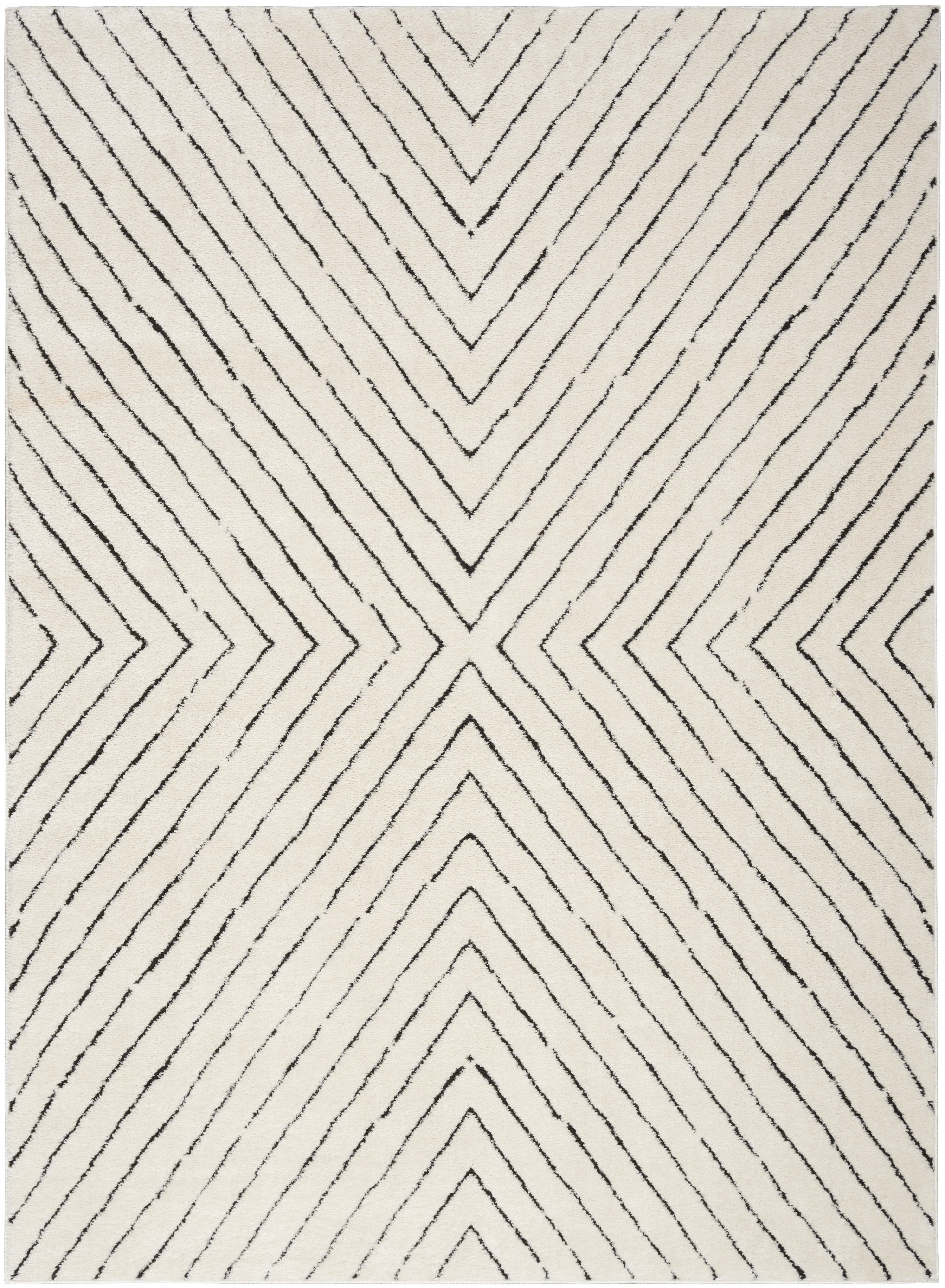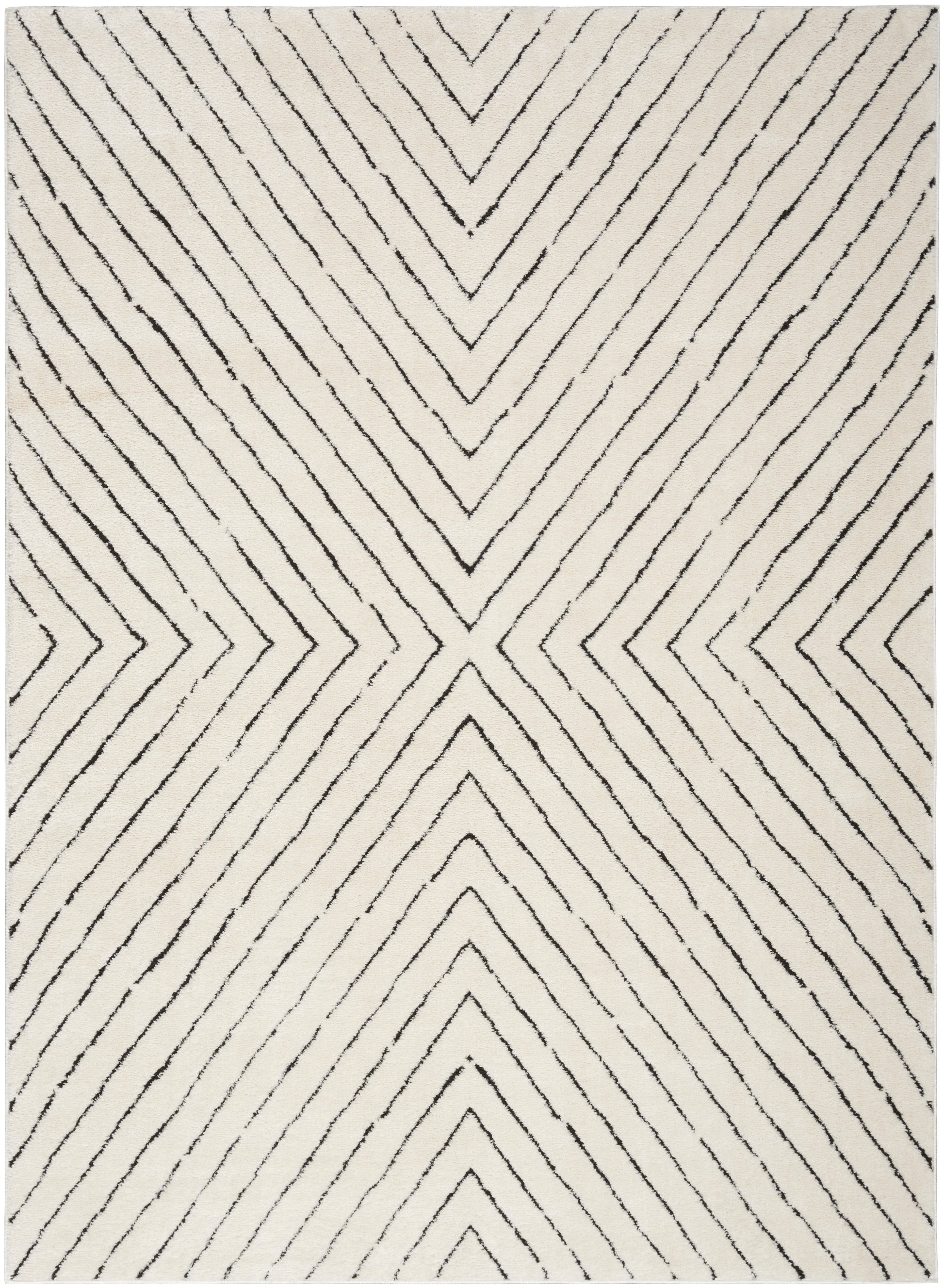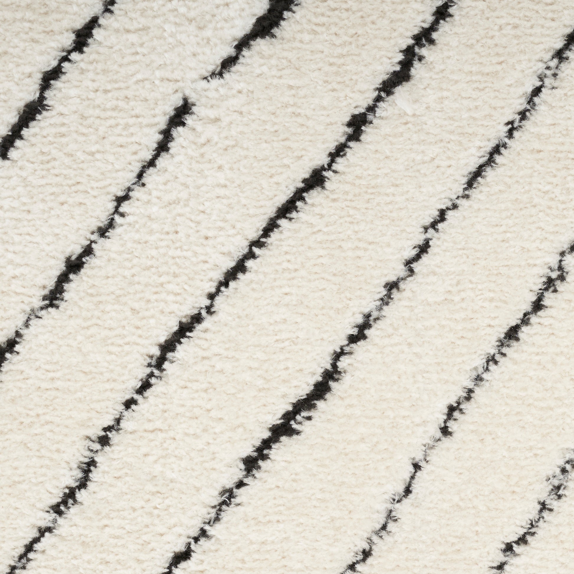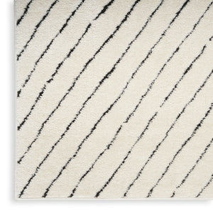Introducing the Nourison Modern Comfort Ivory Black rug, featuring a sleek modern design with geometric and stripes patterns. Made in Turkey from high-quality polyester, this rug is available in various sizes to suit your space. The black and white color scheme adds a contemporary touch to any room, while the anti-allergic and anti-static properties make it perfect for bedrooms and dining rooms. Elevate your living space with this stylish and durable woven carpet from Nourison.
