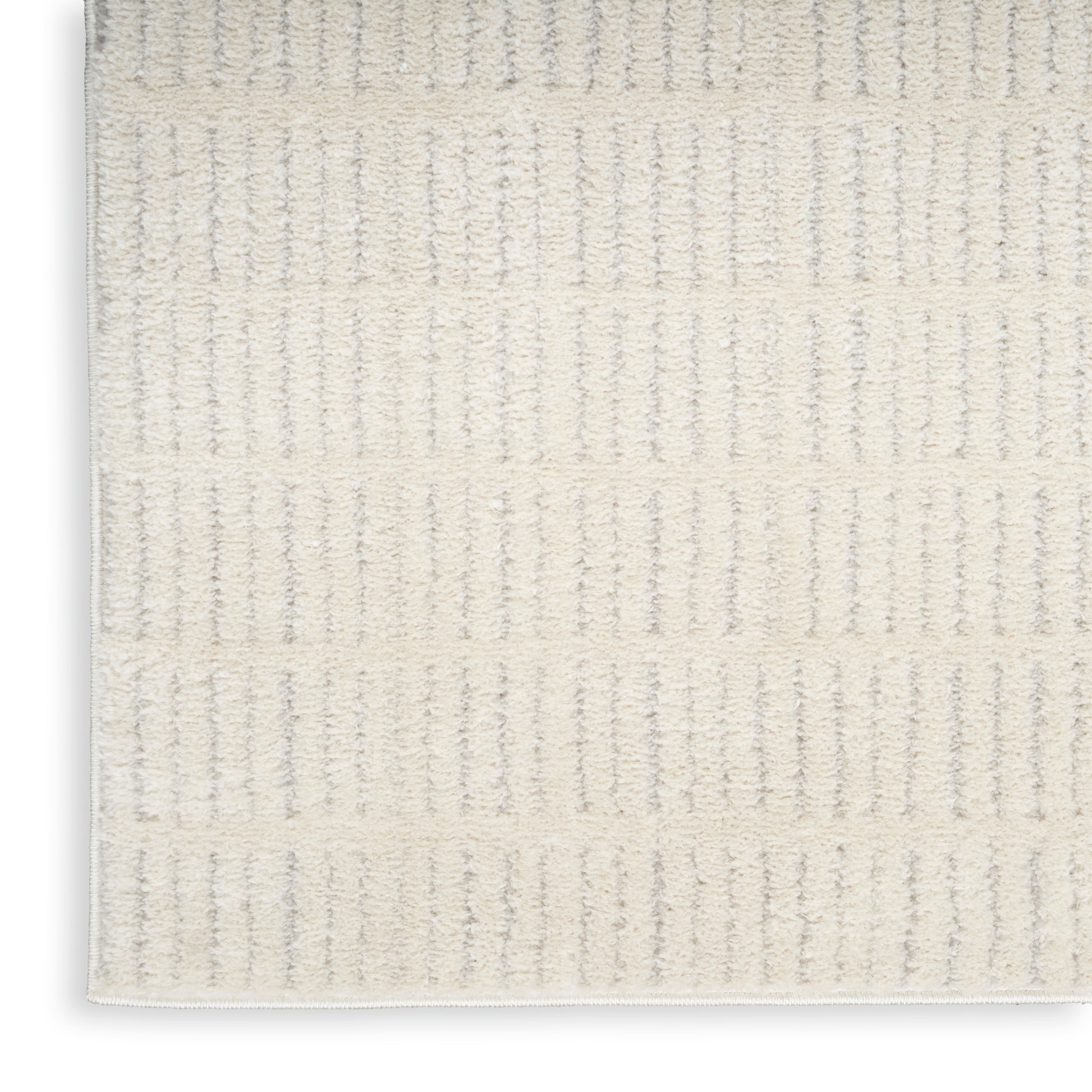 Introducing the Nourison Modern Comfort Ivory Grey rug, perfect for adding a touch of modern elegance to any room. Made in Turkey from high-quality polyester, this rug features a stylish geometric design in a neutral color palette of ivory and grey. Available in multiple sizes, this rug is anti-allergic and anti-static, making it ideal for use in bedrooms, dining rooms, and living rooms. Elevate your space with the luxurious feel and contemporary style of this woven carpet from Nourison.