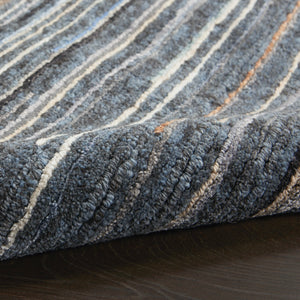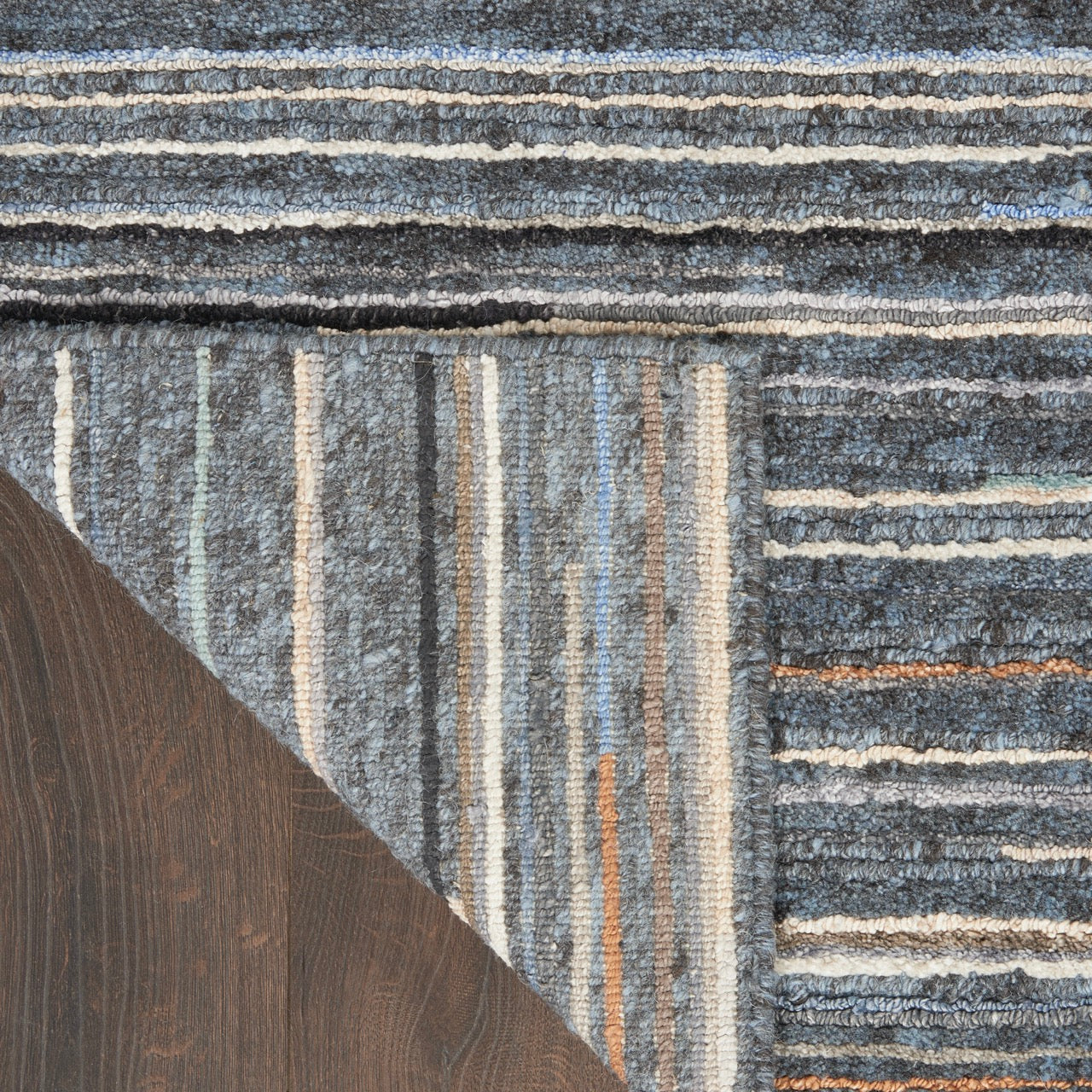 Introducing the Nourison Plateau Blue PAE01 rug, hand-knotted in India with luxurious wool. This modern piece features a stunning gradation of blue stripes, perfect for adding a touch of sophistication to any living or dining room. Not only is this rug anti-allergic and anti-static, but it also comes in two versatile sizes to suit your space. Elevate your home decor with the Nourison Plateau Blue PAE01 rug today.