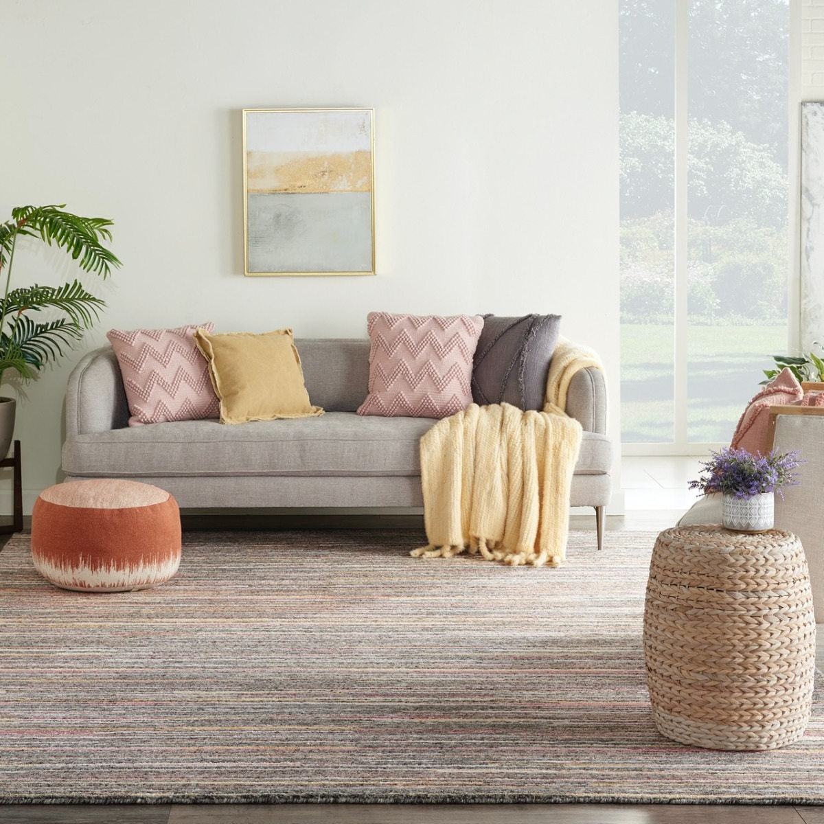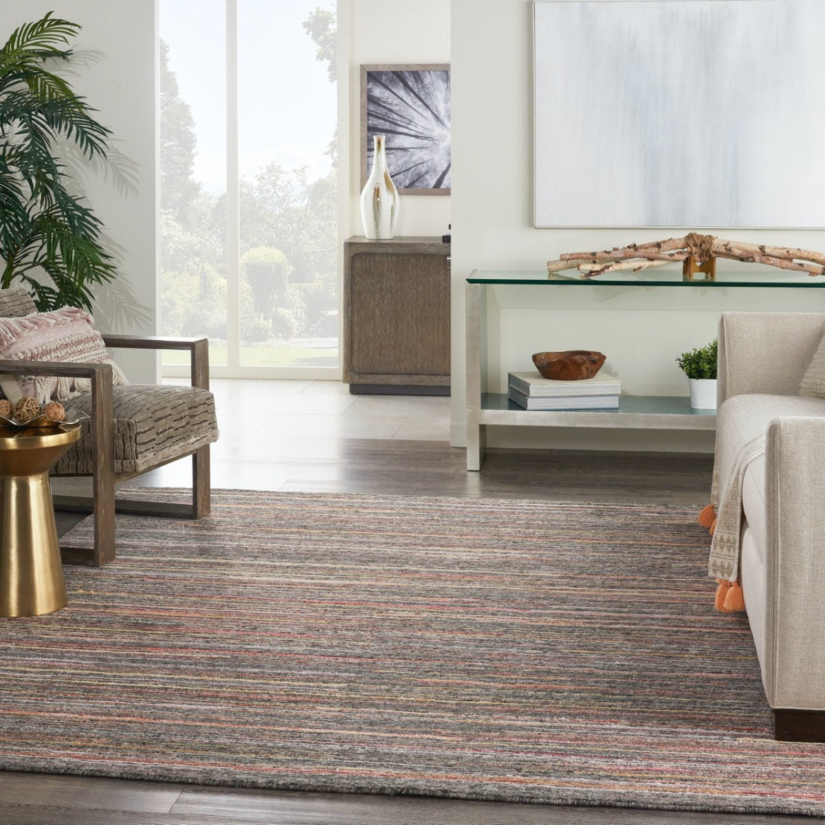 Introducing the Nourison Plateau Grey Flame PAE01 rug, hand-knotted in India with high-quality wool. This modern piece features a stunning gradation of stripes in shades of brown, perfect for adding a touch of sophistication to your living or dining room. Not only is this rug anti-allergic and anti-static, but it also comes in two versatile sizes to suit your space. Elevate your home decor with the Nourison Plateau Grey Flame PAE01 rug today.