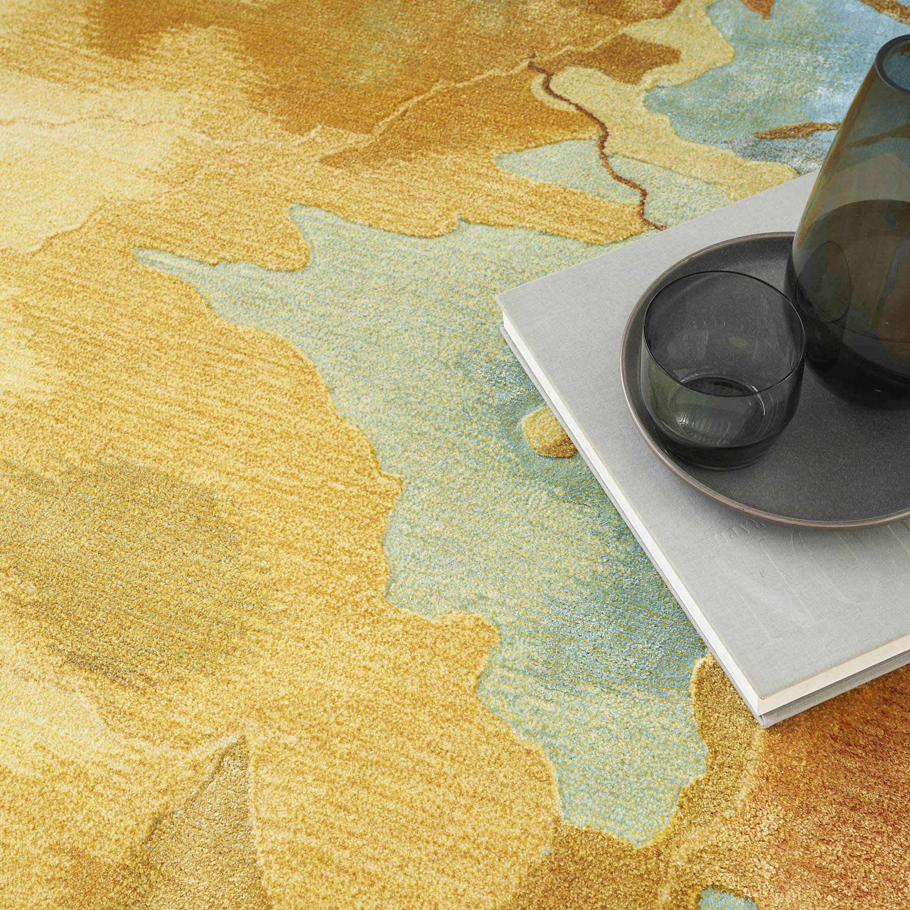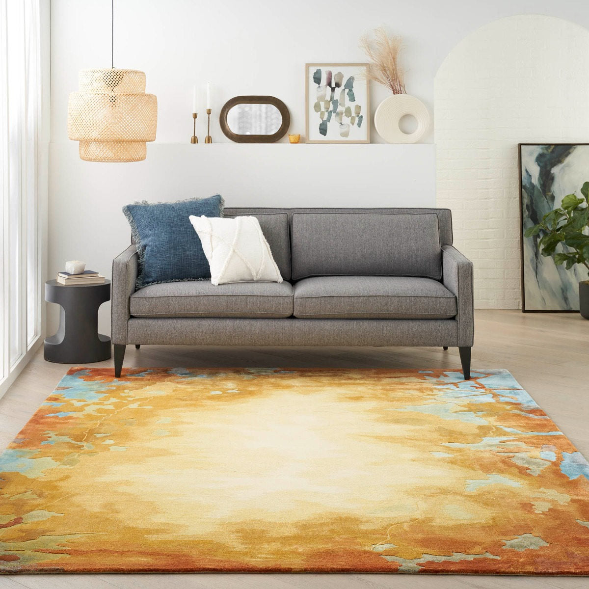 Introducing the Nourison Prismatic Gold Multicolour PRS29 rug, handtufted in China with high-quality wool. This abstract design adds a modern and eclectic touch to any living or dining room. The vibrant yellow color brightens up the space while the anti-allergic and anti-static properties ensure a comfortable and healthy environment. Available in various sizes to fit your space perfectly. Elevate your decor with this unique and stylish rug from Nourison.